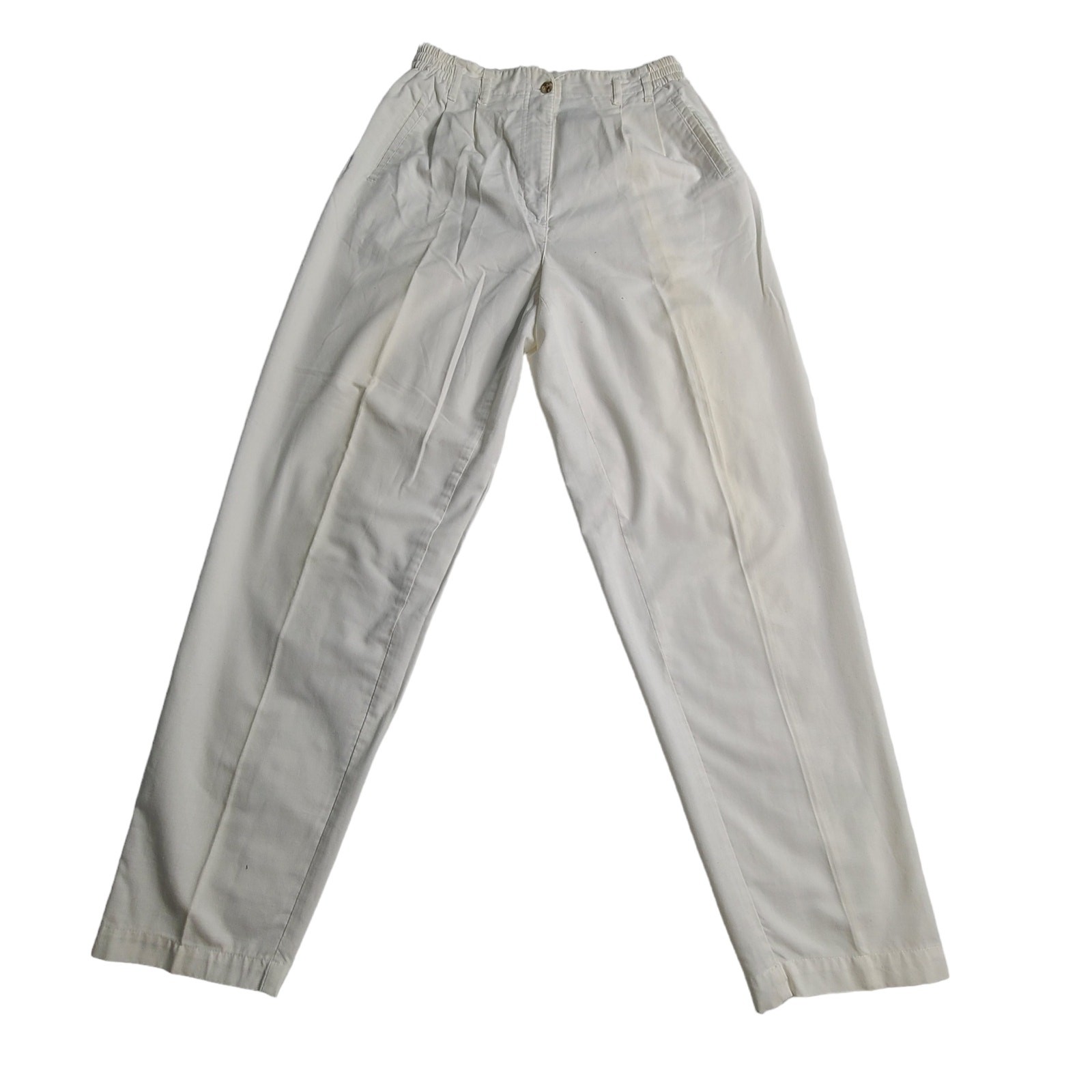 Vintage White Tapered Leg Pleated Carrot Pant Elastic HIgh Waist Women's 6 2207