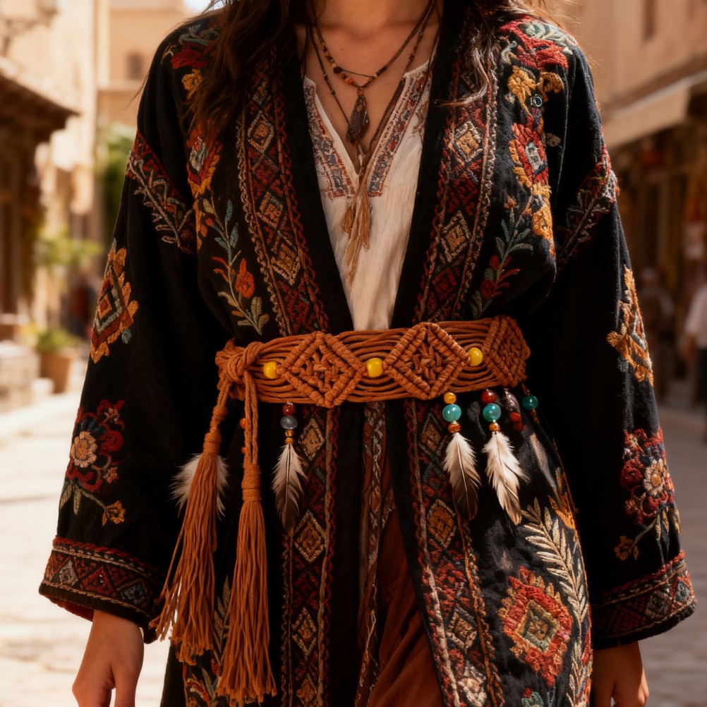 Boho Belt For Women - Vintage Wood Beads Woven Waist Rope - Handcrafted