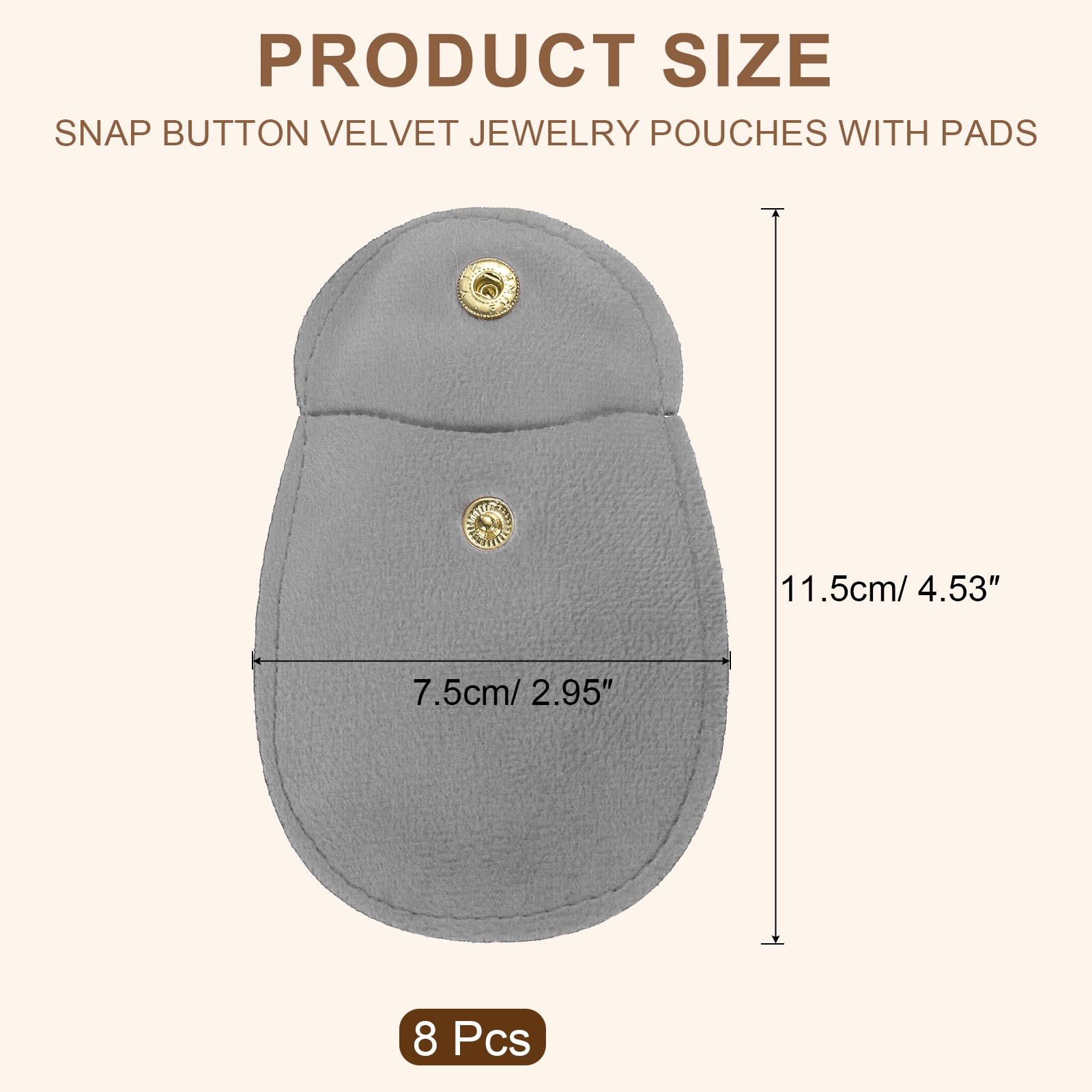 8Pcs 7.5 x 11.5 cm Snap Button Jewelry Velvet Gift Bags Organizer Grey