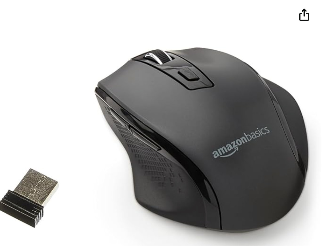 Amazon Basics Computer Mouse Wireless, Ergonomic, 2.4 GHz Optical, DPI Adjustabl