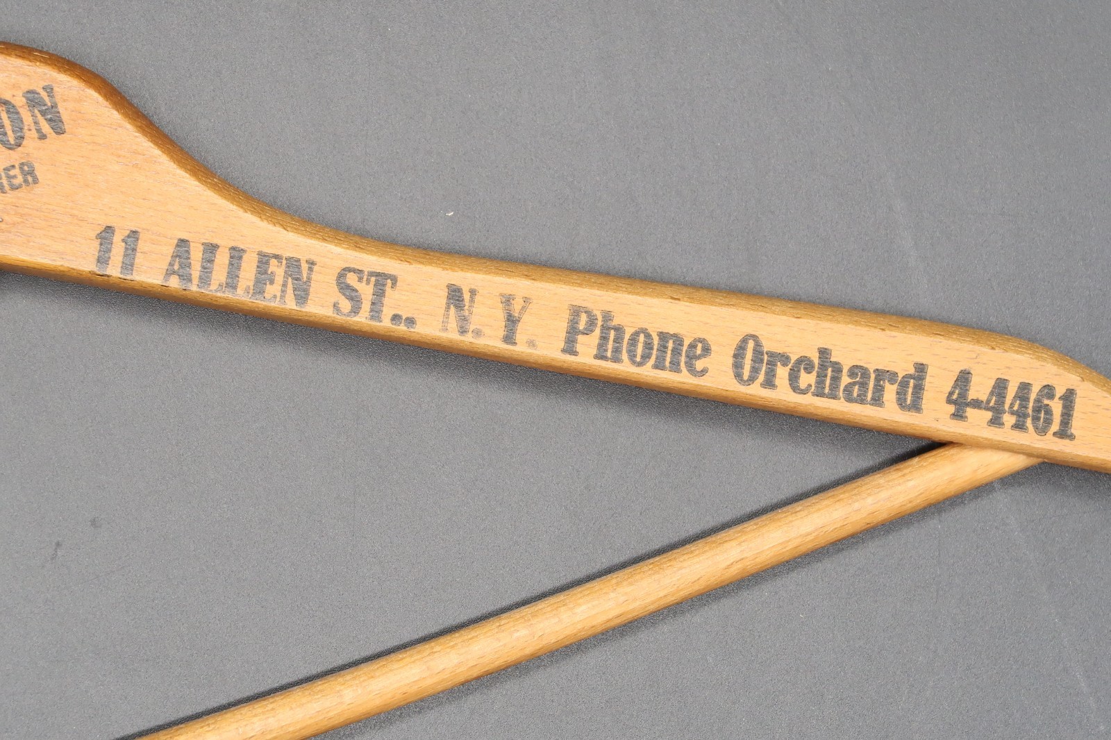 как выглядит Vtg B Gordon Wooden Hanger Integrity Clothes 11 Allen Street NYC Advertising HTF фото