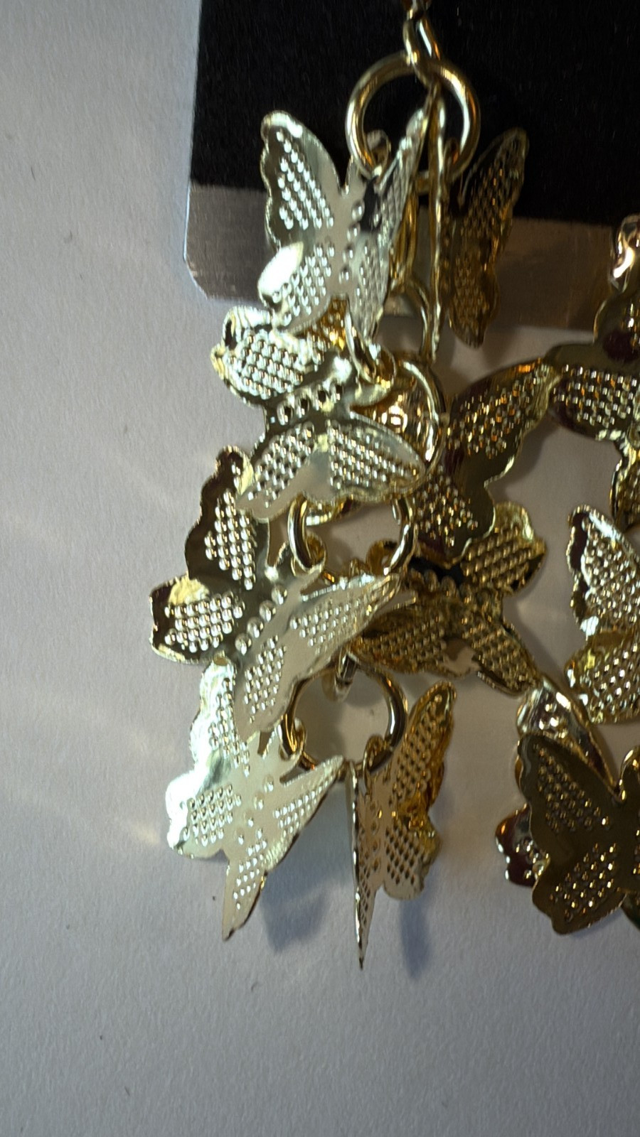 NEW 2 PAIRS OF LONG GOLD TONE DANGLE EARRINGS BUTTERFLIES AND LEAVES WIRE