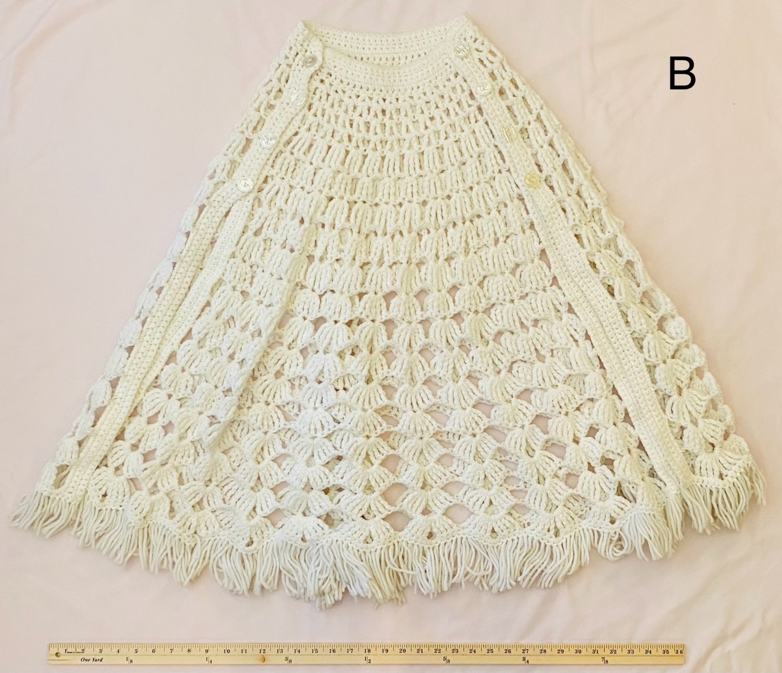 как выглядит Vintage 70 s Crocheted Winter Shawl With Fringe Set of 2 Ivory Cream Color фото