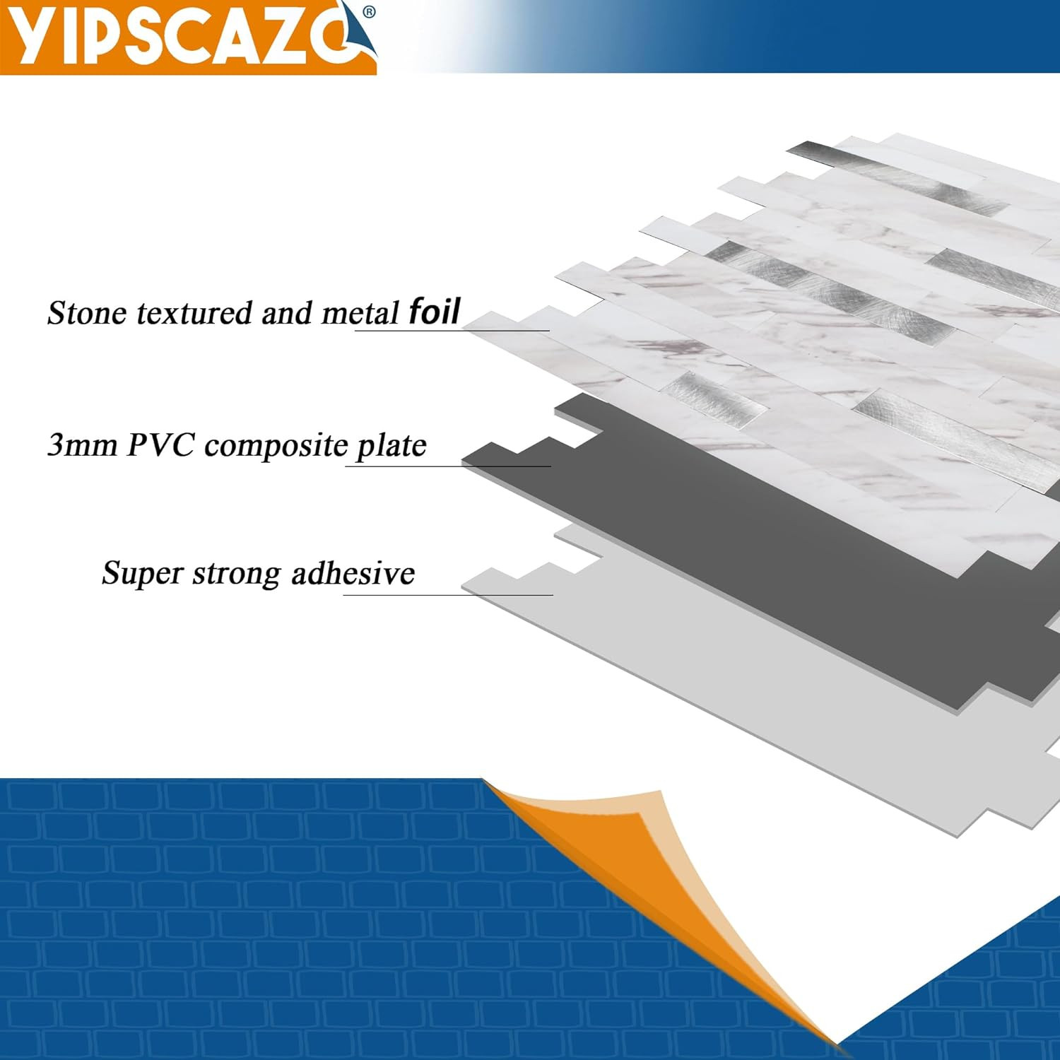 Особенности: Peel-and-Stick with Natural Stone Texture and Stainless Steel Pla