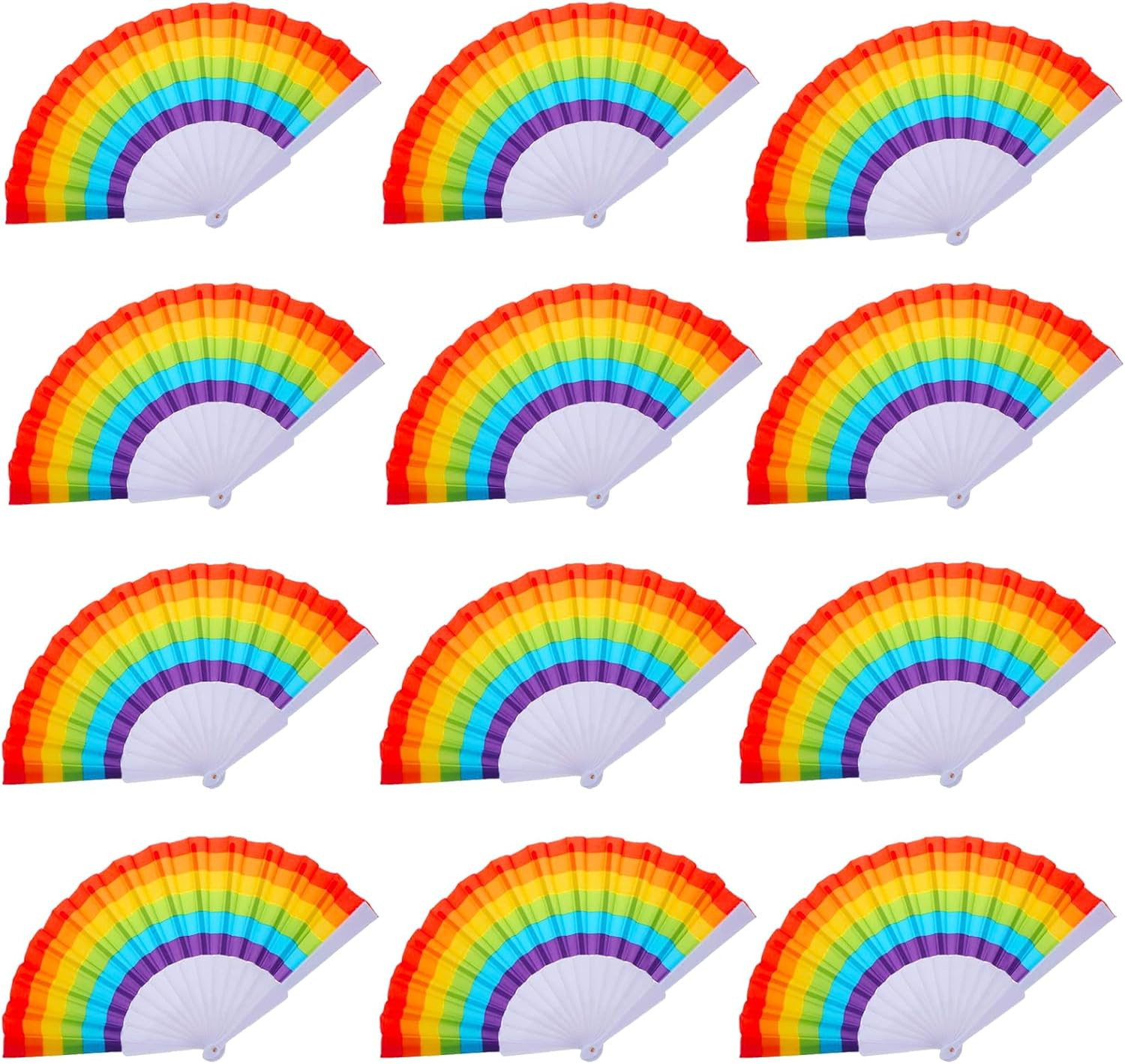 12 Pcs Rainbow Folding Fans Colorful Hand Held Fan, Rainbow Party Decoration, LG