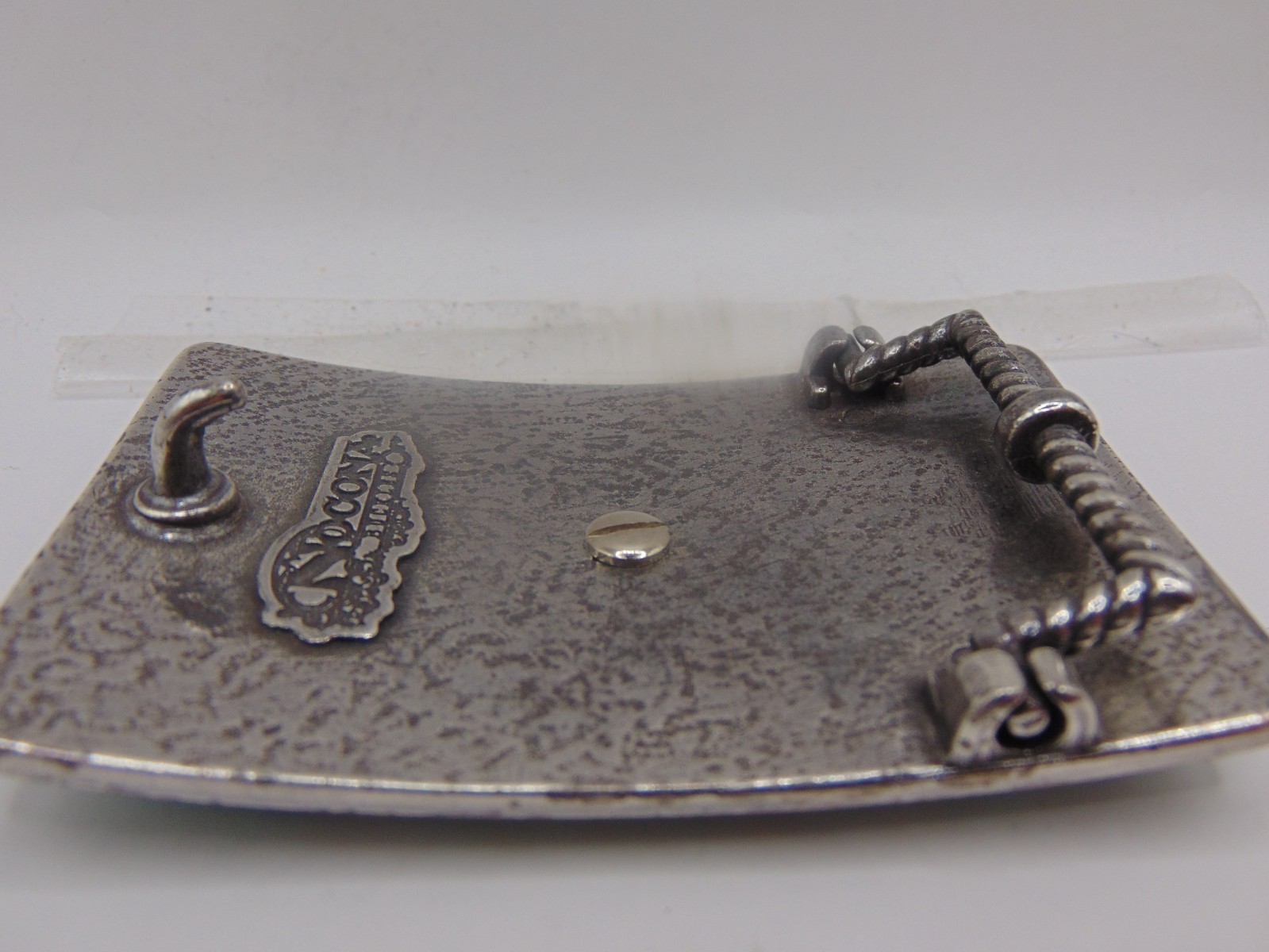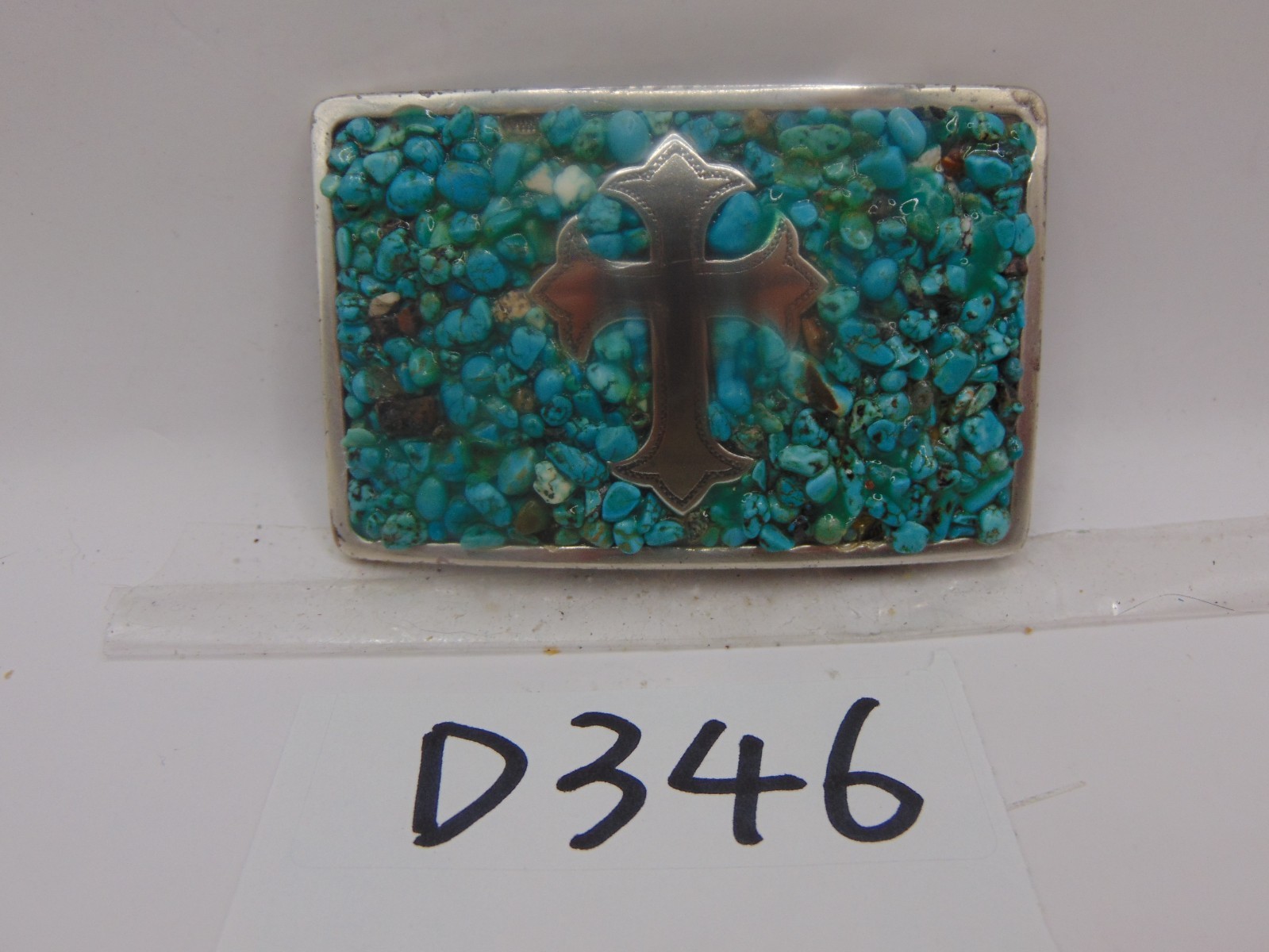 как выглядит Nocona Buckles Western Belt Buckle With Cross And Turquoise Stones Silver Tone фото