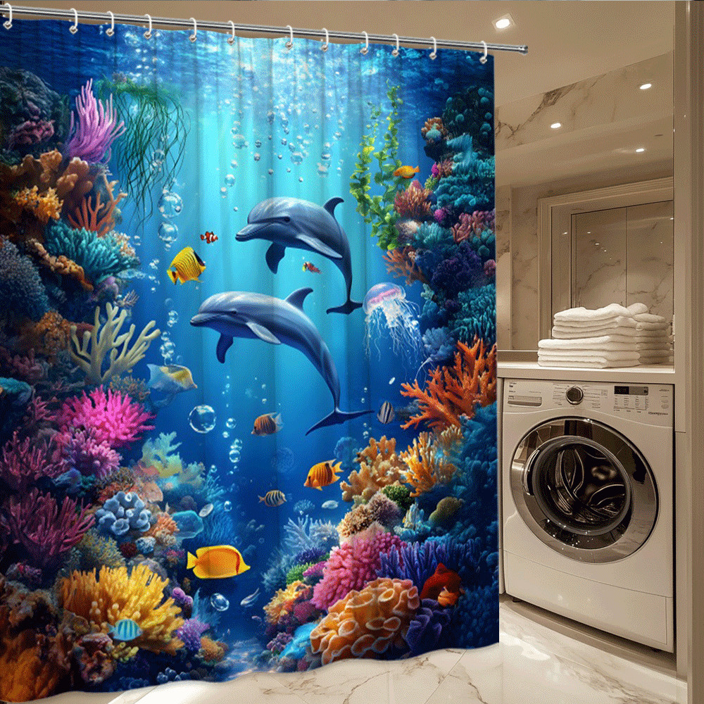 как выглядит Dolphin Ocean Shower Curtain Underwater Coral Reef Sea Life Design фото