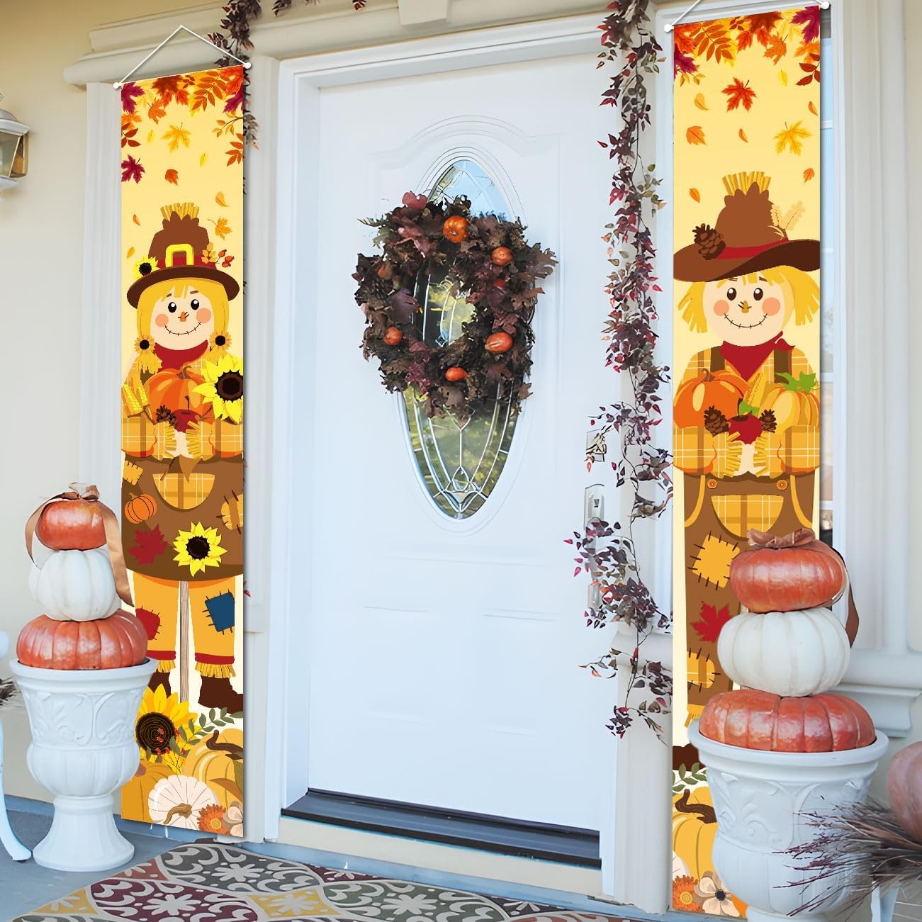 Thanksgiving Decorations Porch Sign Banner Fall Harvest Scarecrow Front Porch De