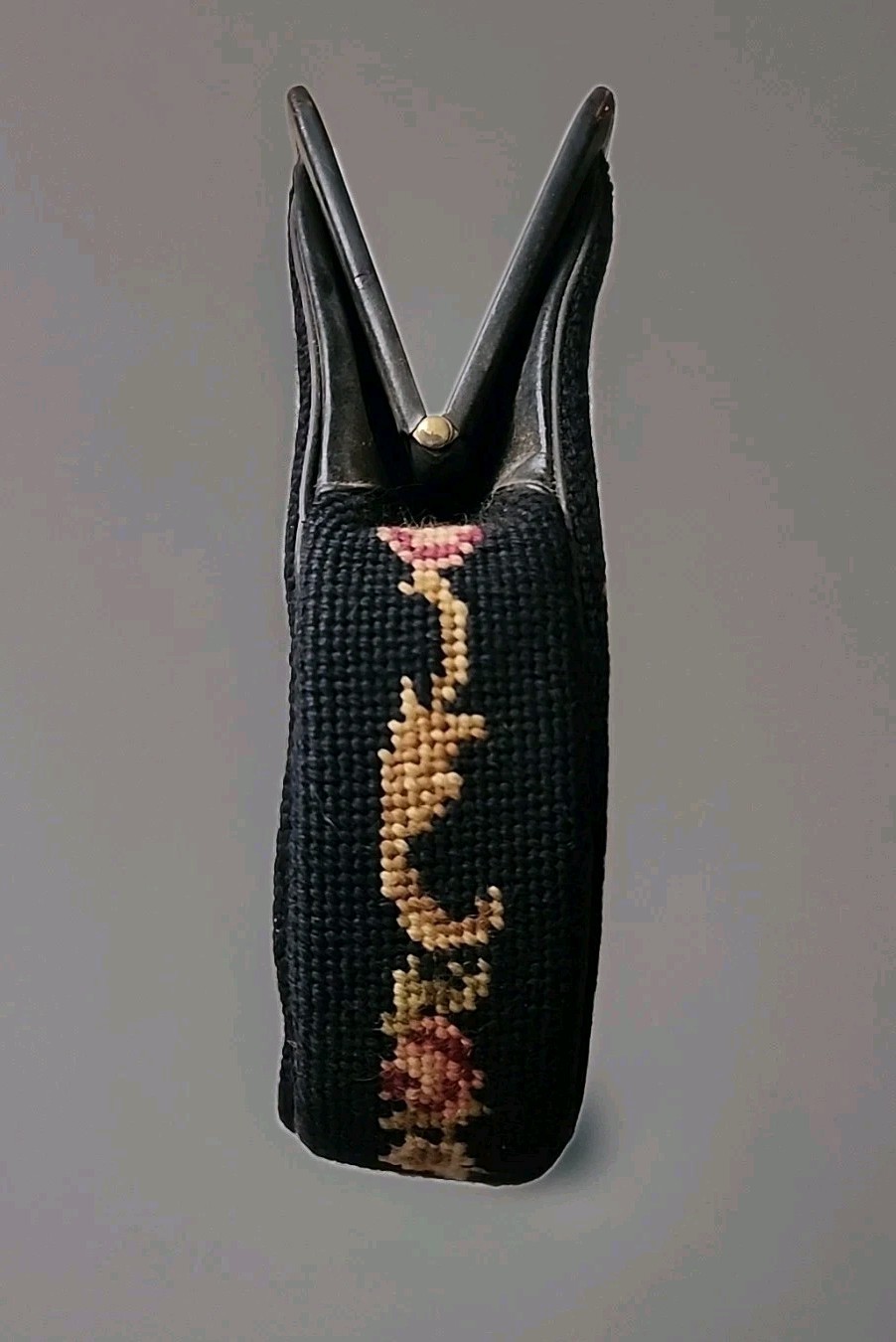 Vintage Needlepoint Floral Tapestry Large Frame Purse Handbag Top Clasp