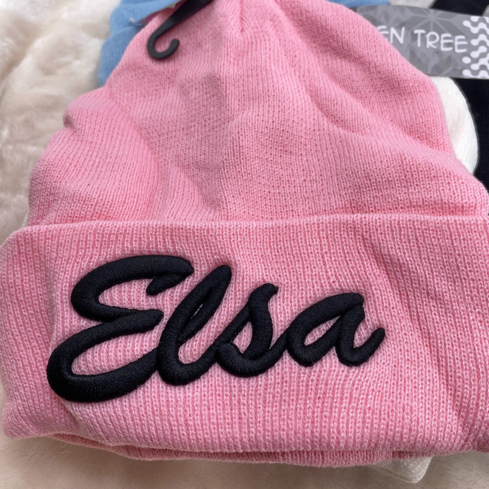 NEW Elsa Girls' One Size Beanie Hat Embroidered Name Elsa WHITE