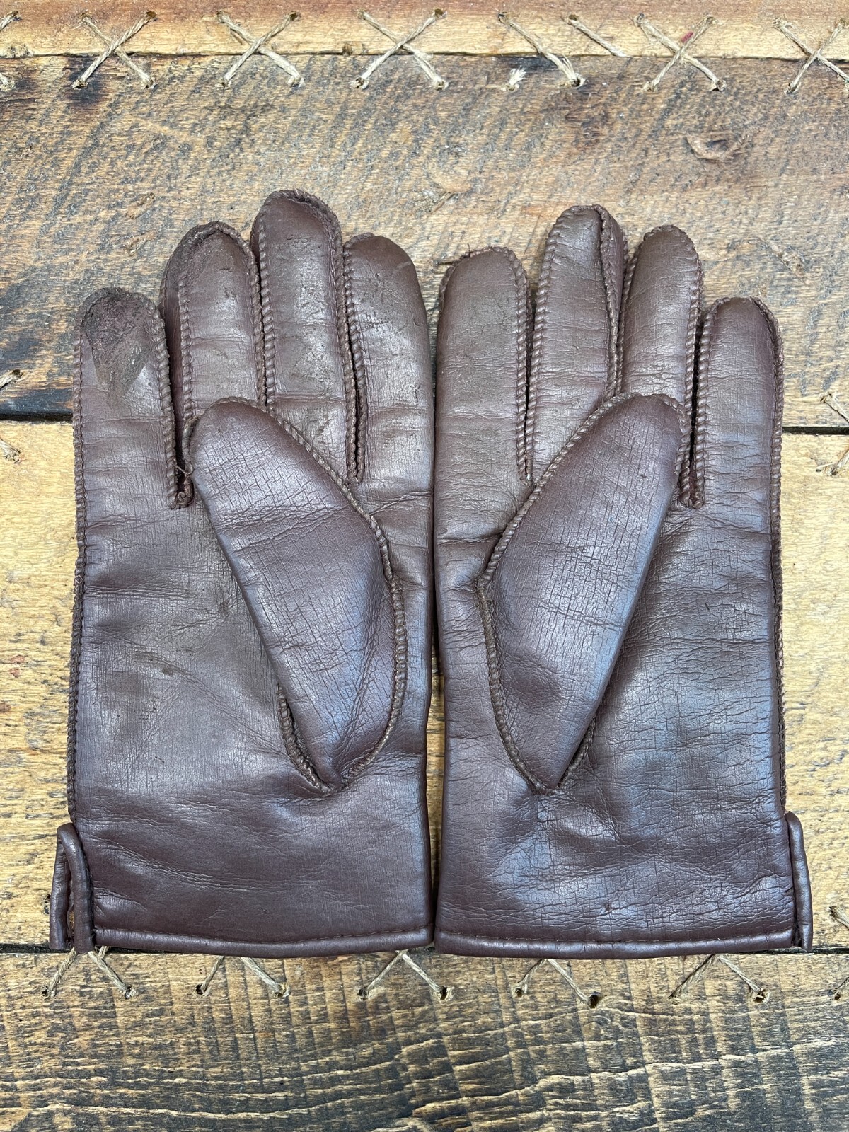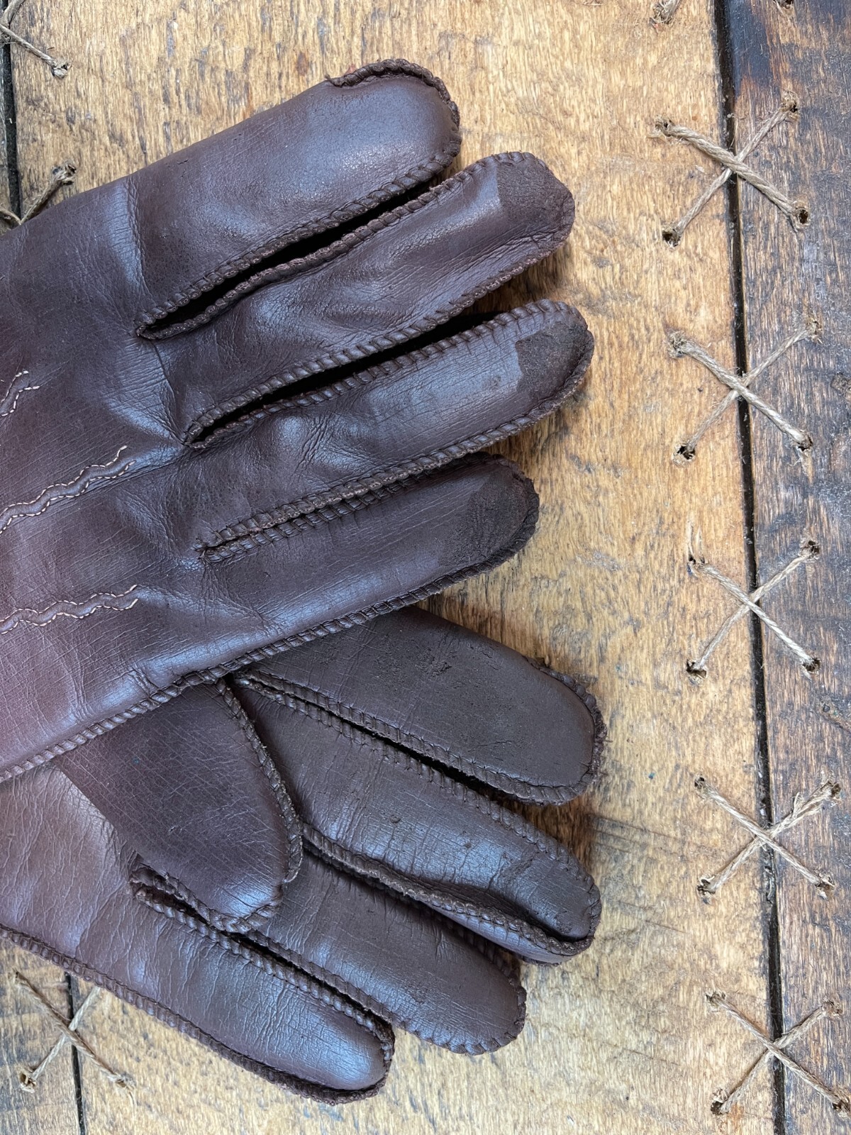 Vintage High Quality Winter BROWN Leather Rayon Lined Vinyl Gloves Size Medium