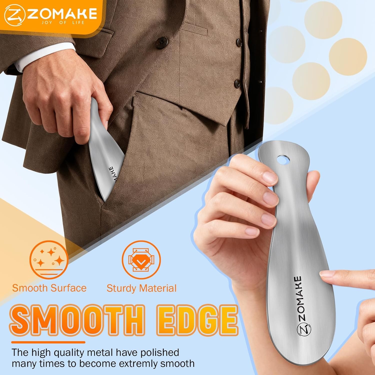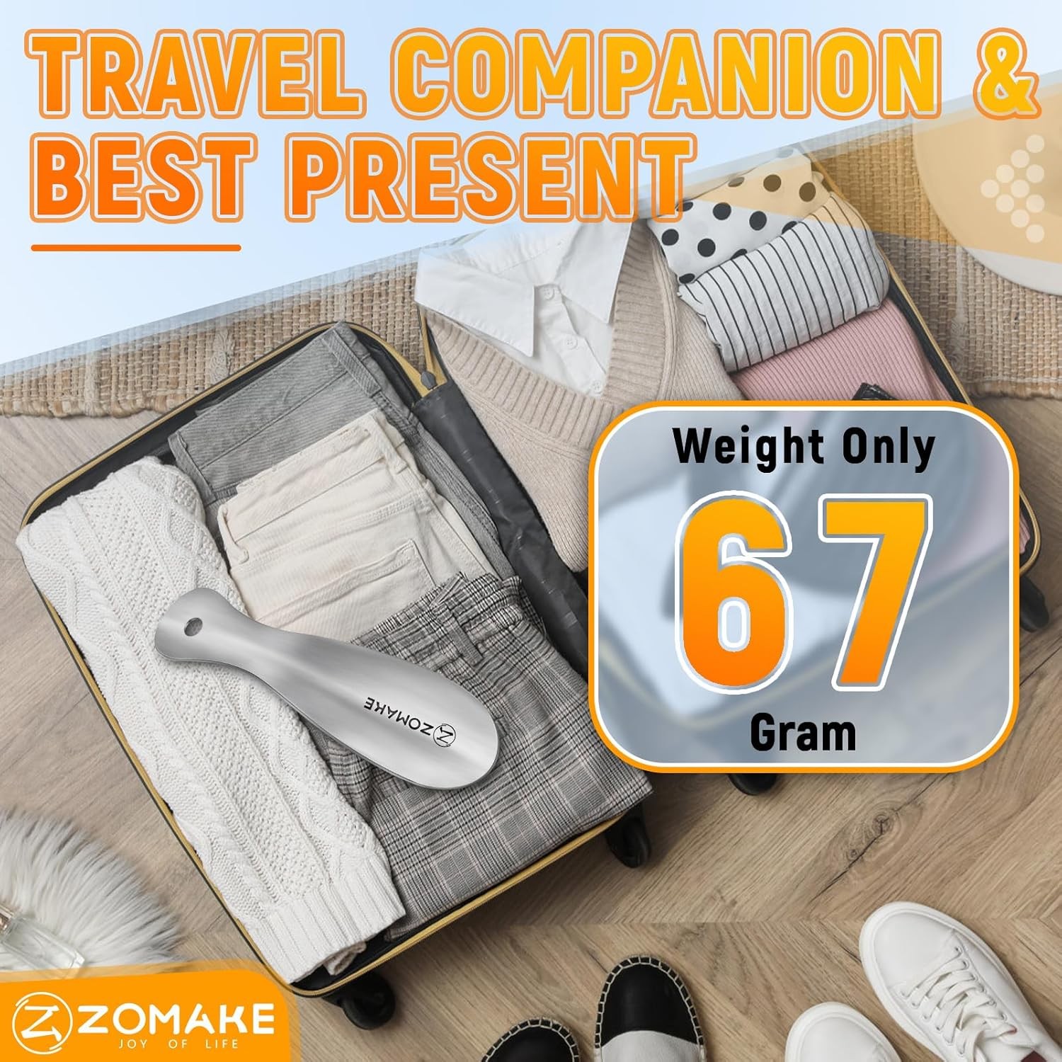 ZOMAKE Metal Shoe Horn, Small Travel Shoehorn for Men Women Kids,7.5'' 2 Pcs