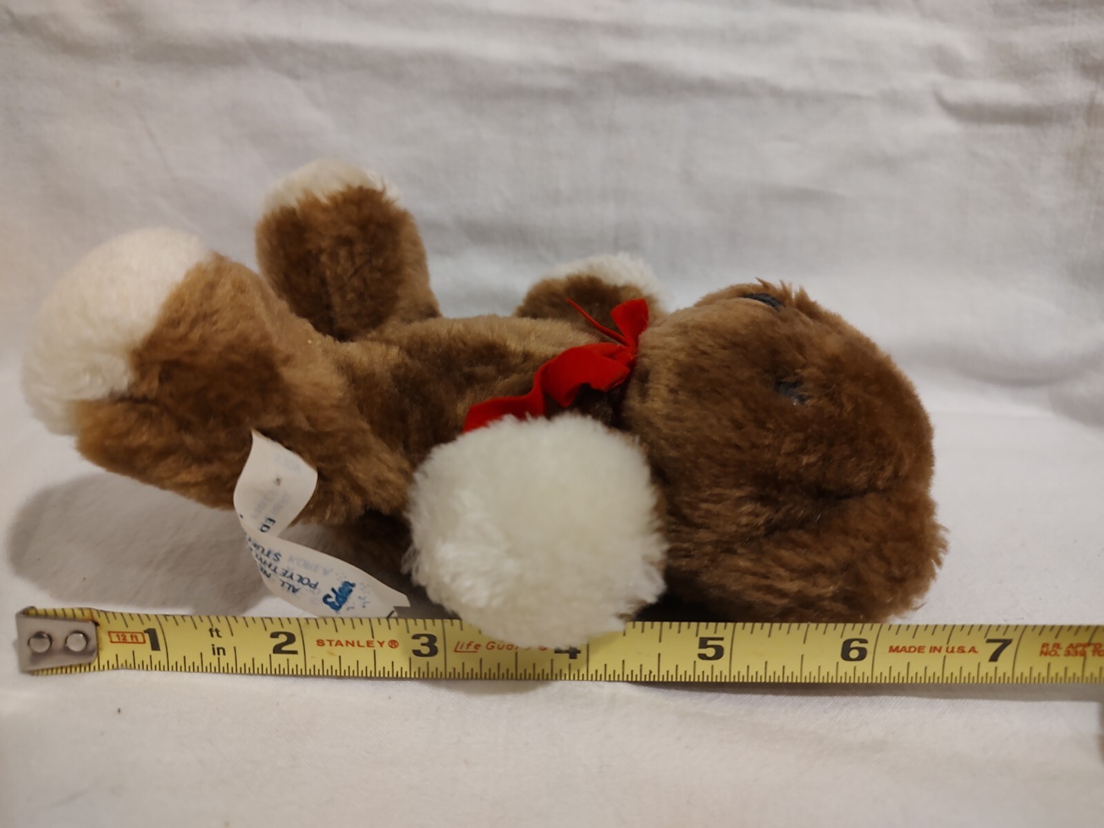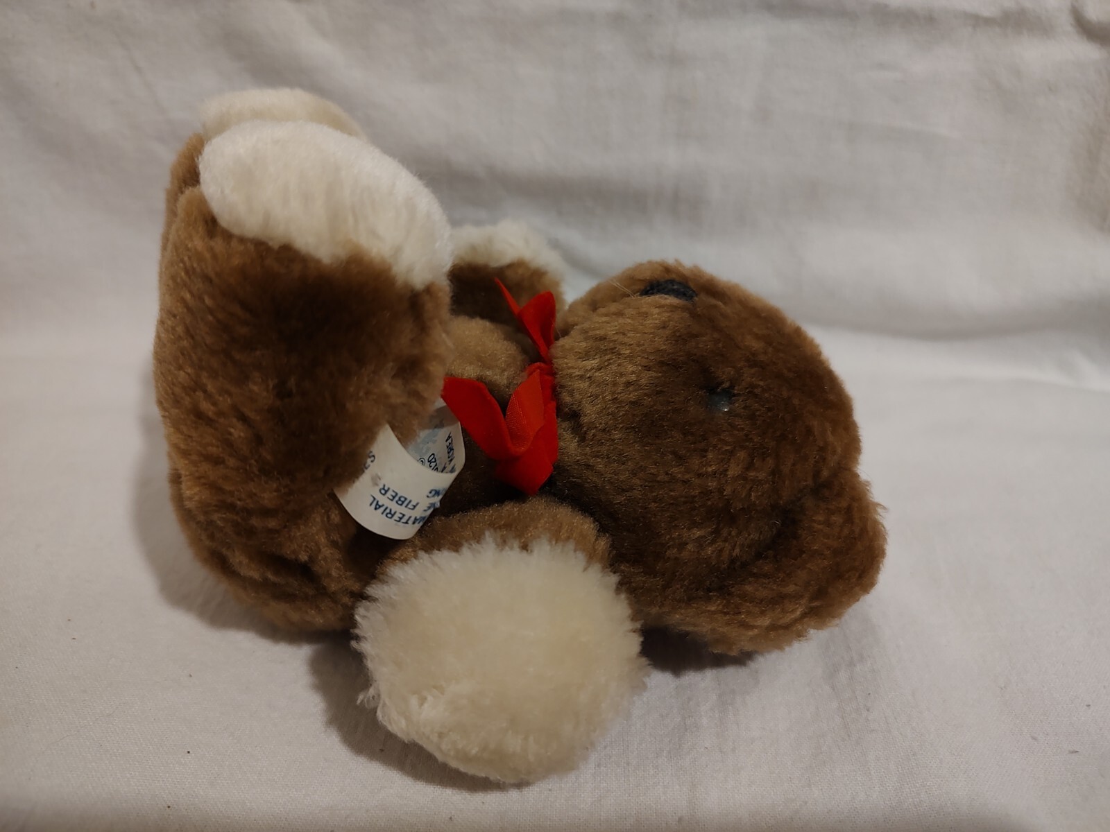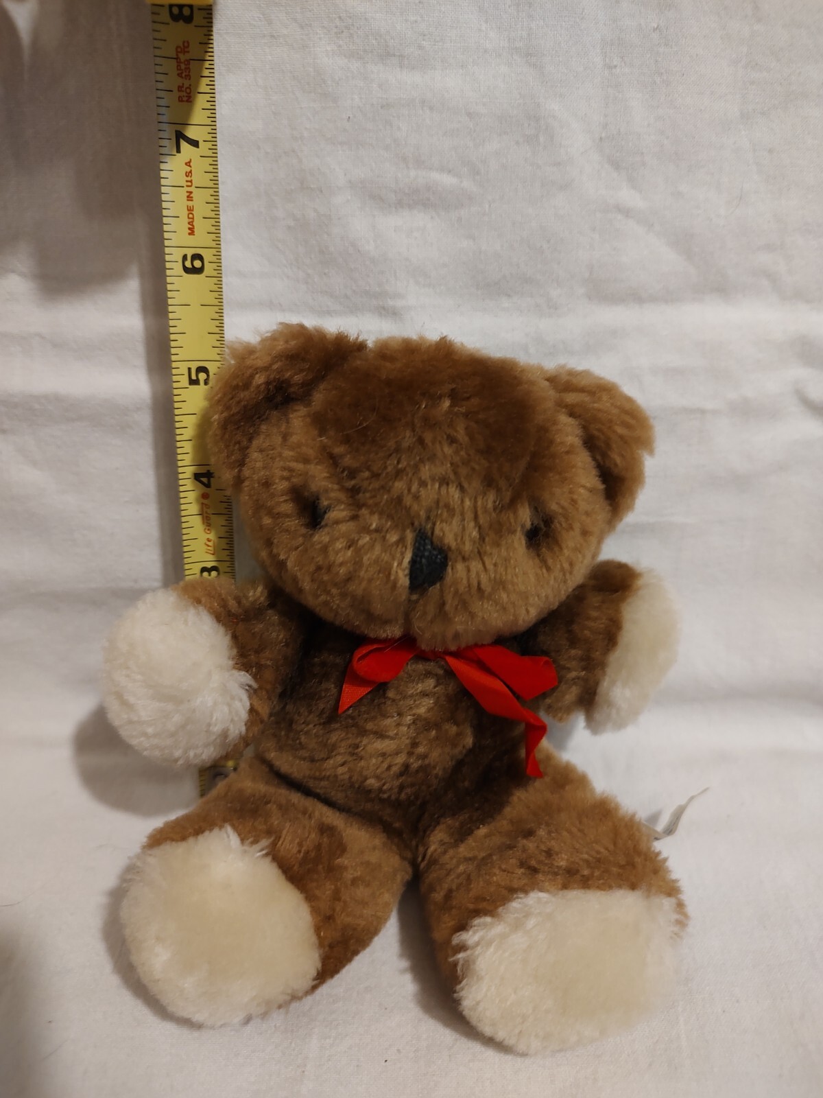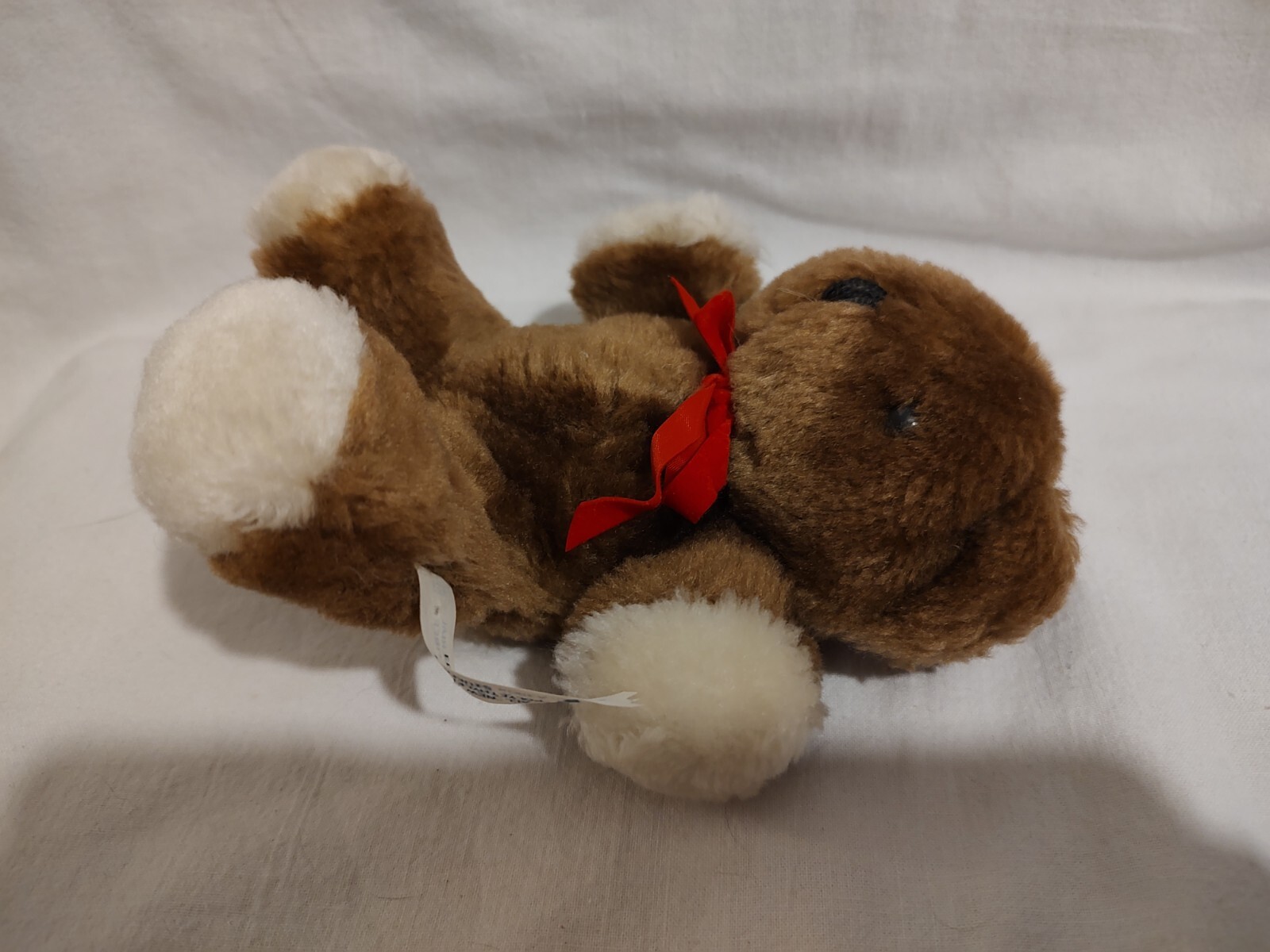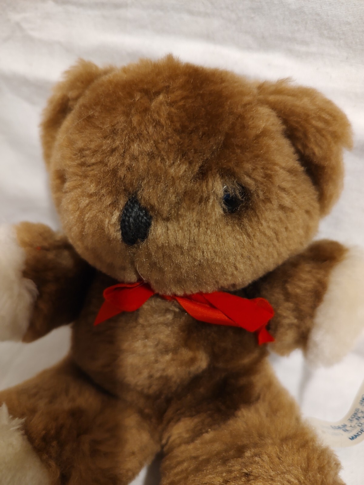 VINTAGE EDEN BROWN BABY TEDDY BEAR STUFFED ANIMAL PLUSH TOY w/ Rattle Red Bow 6