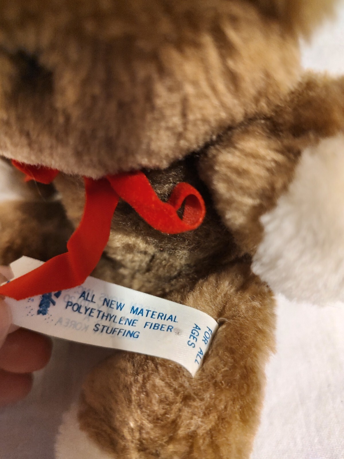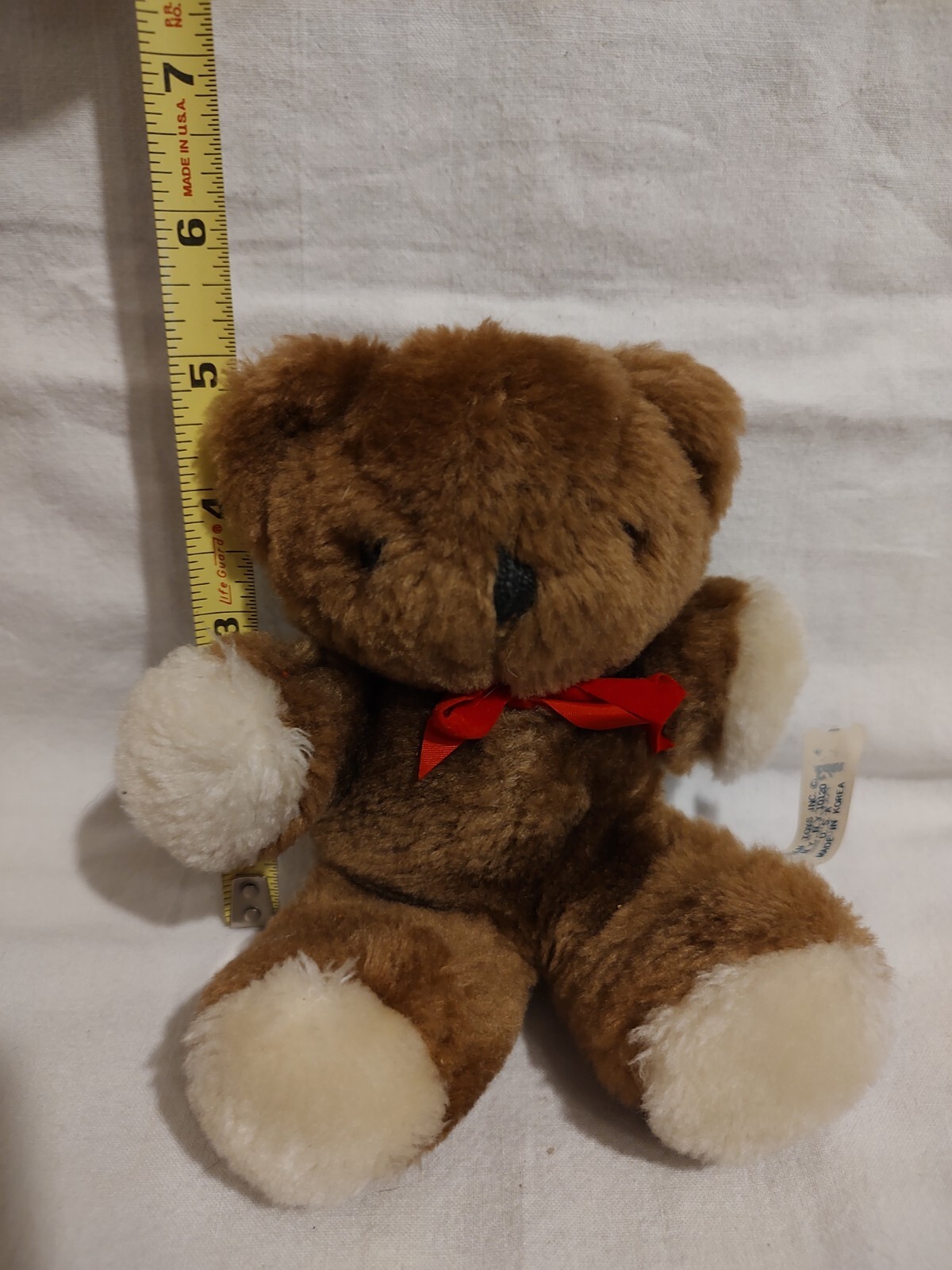 как выглядит VINTAGE EDEN BROWN BABY TEDDY BEAR STUFFED ANIMAL PLUSH TOY w/ Rattle Red Bow 6" фото