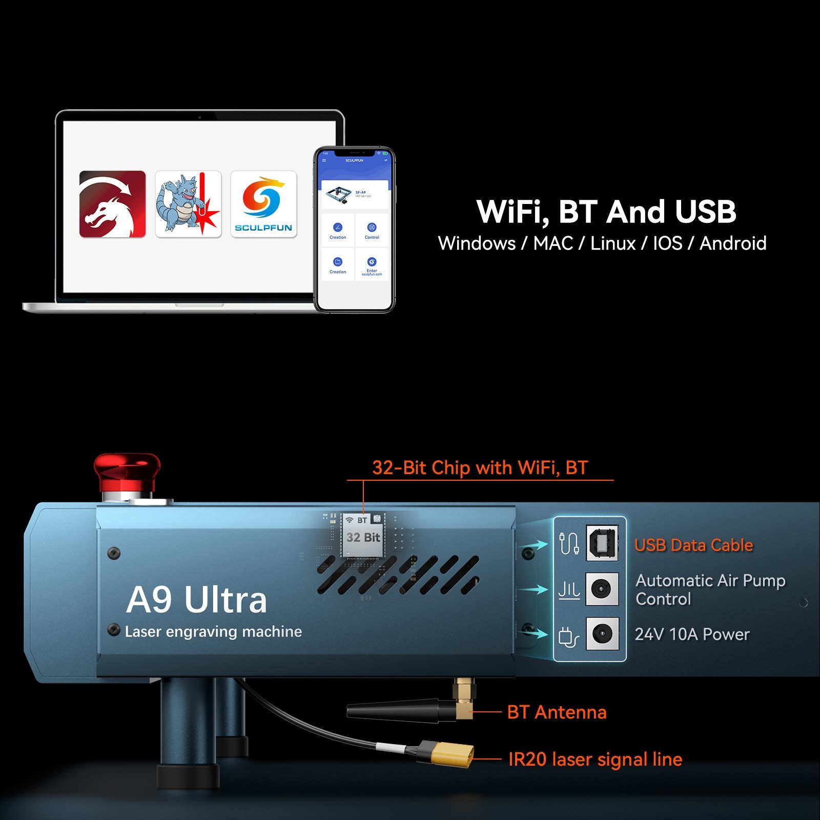 SCULPFUN A9 Ultra Desktop Laser Engraver 20W Red Light Fiber Laser Easy to Insta