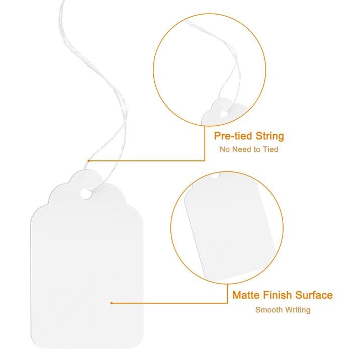 500PCS White Price Tags, String Attached, 1.38 x 0.87, Blank, Arts Crafts
