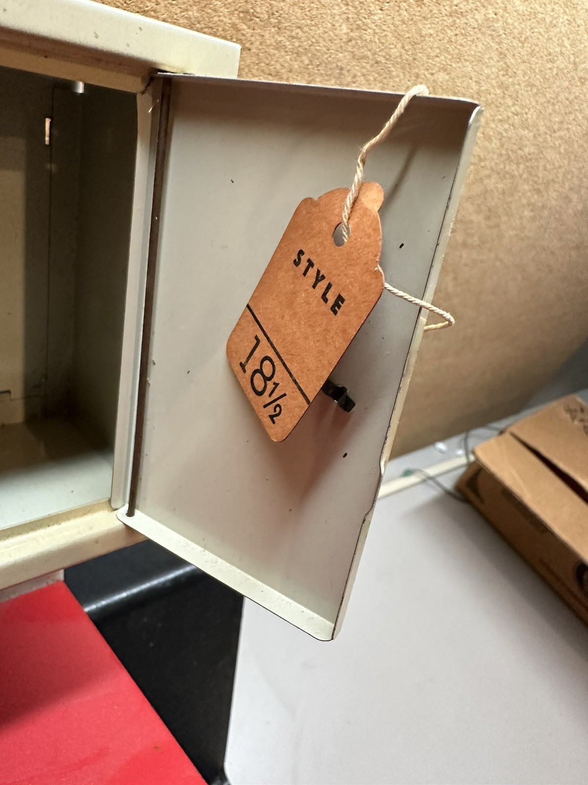 как выглядит Vintage 50s Wolverine Tin Litho Red White Play Kitchen Cabinet NOS old stock фото