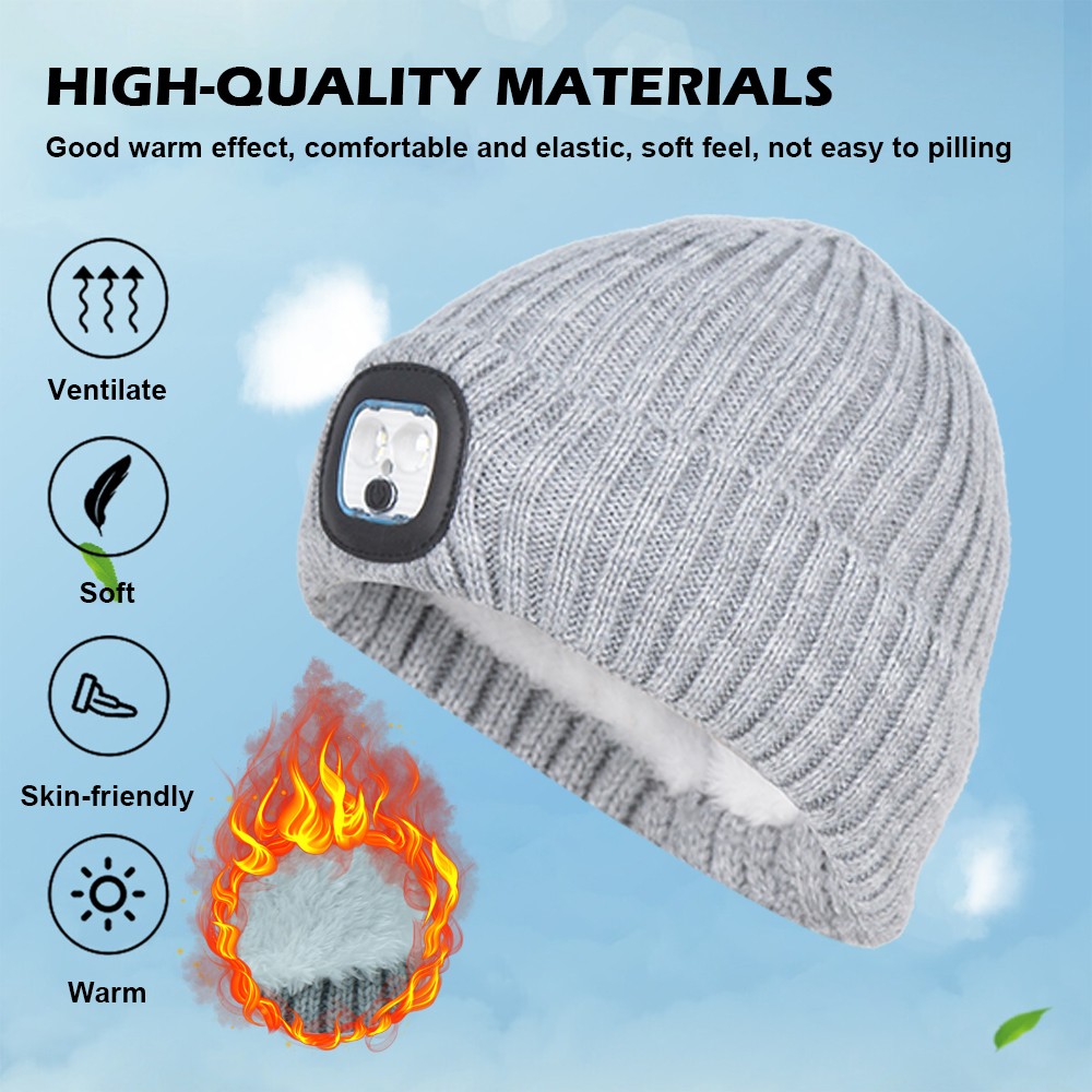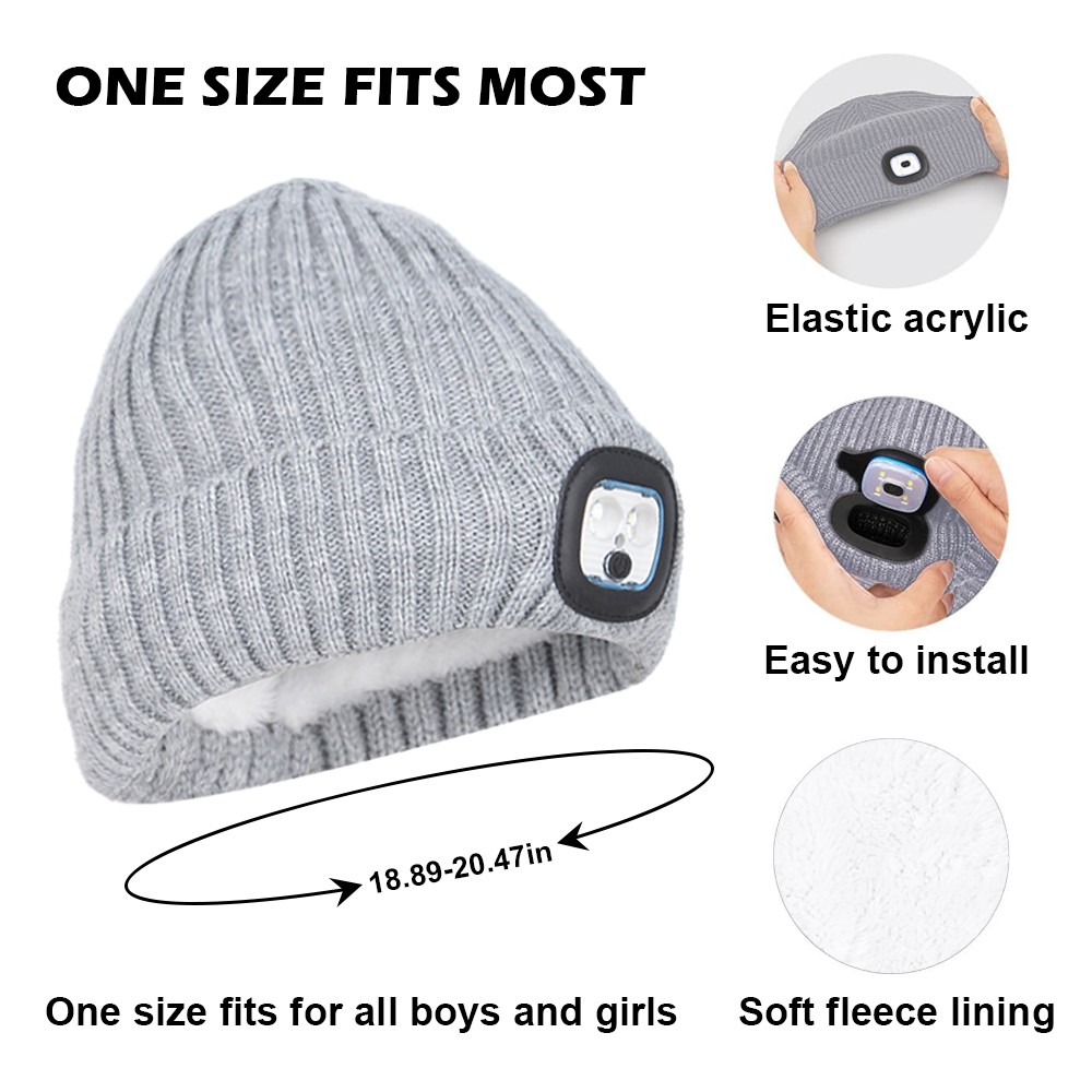 Winter Warm Kids LED Light Beanie Hat USB Rechargeable Knit Headlamp Cap Gift