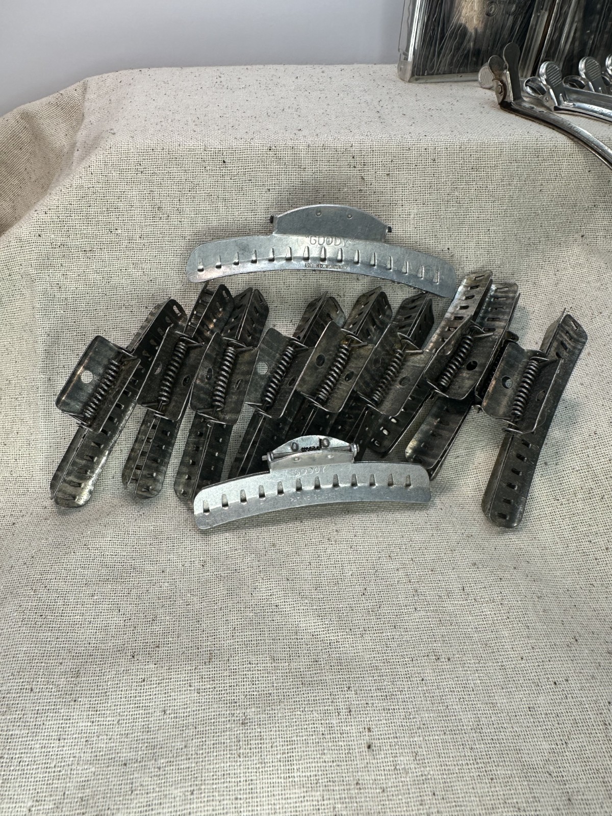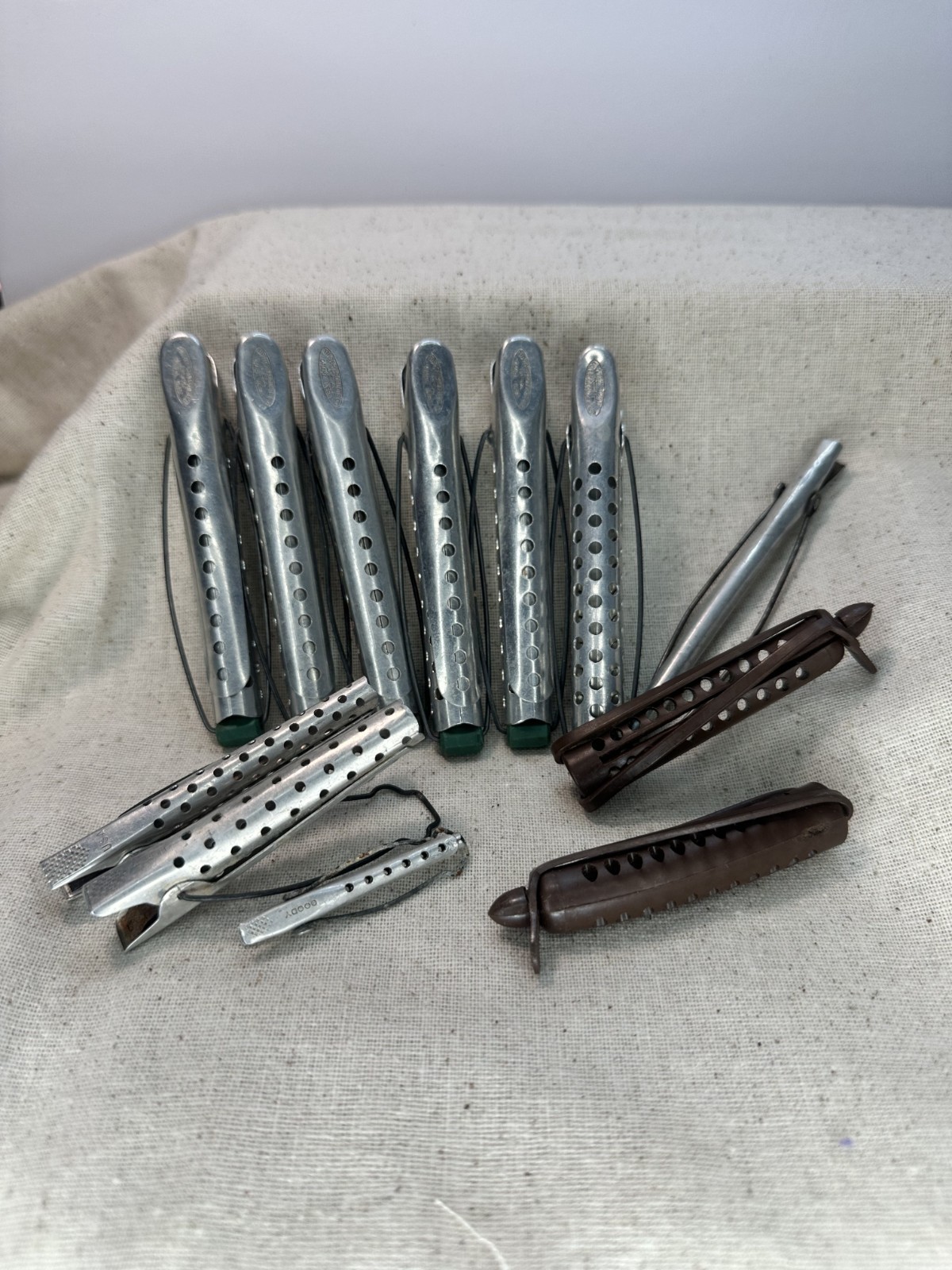 Lot of VTG Aluminum Metal Hair Rollers Perm Curlers Clips claw clips Goody