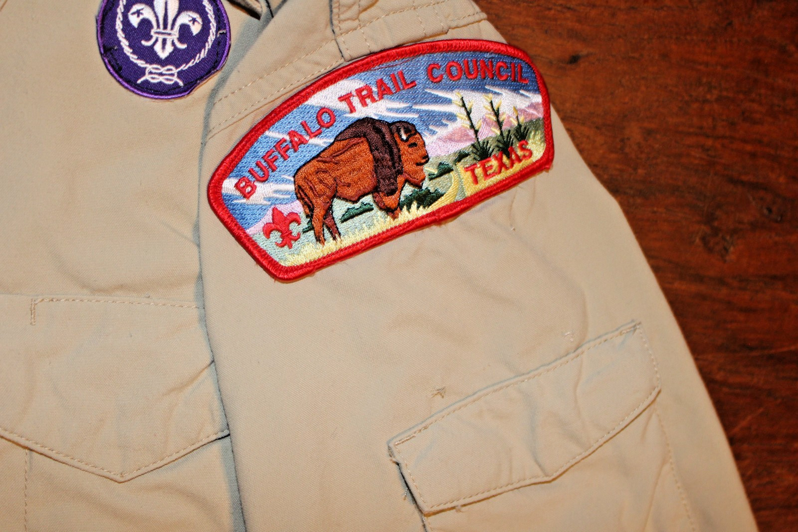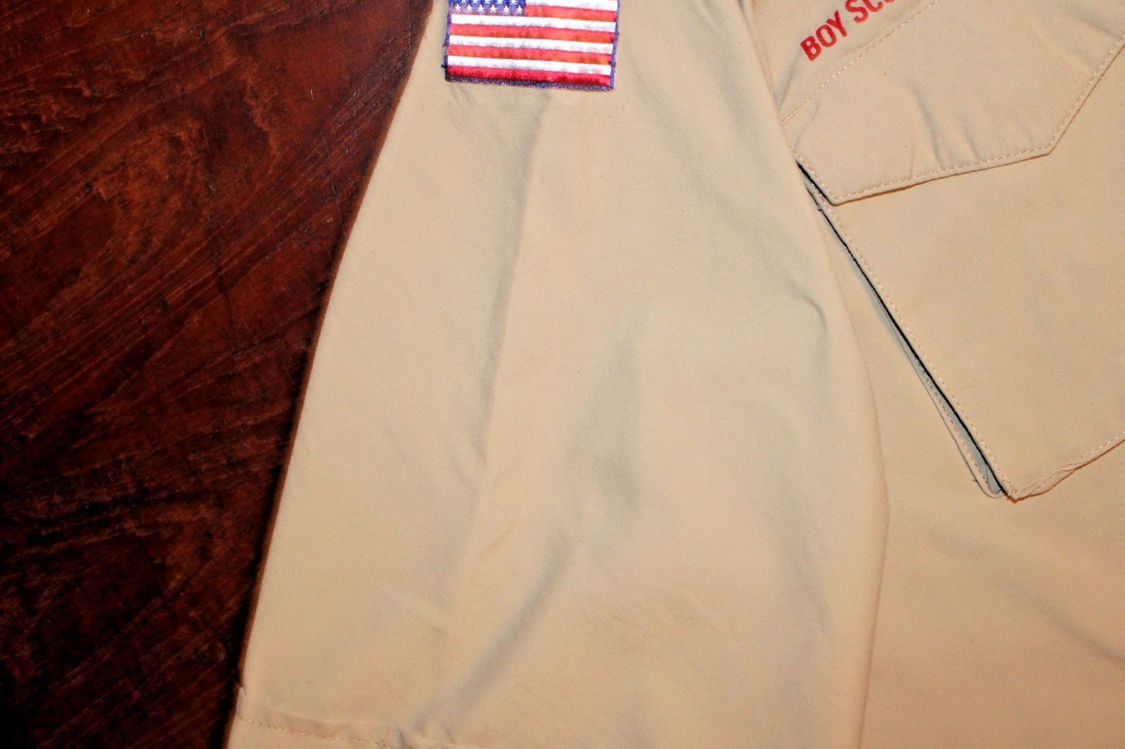 Boy Scouts of America BSA Men's Shirt Tan Medium 100 Supplex Nylon Sewn Patche