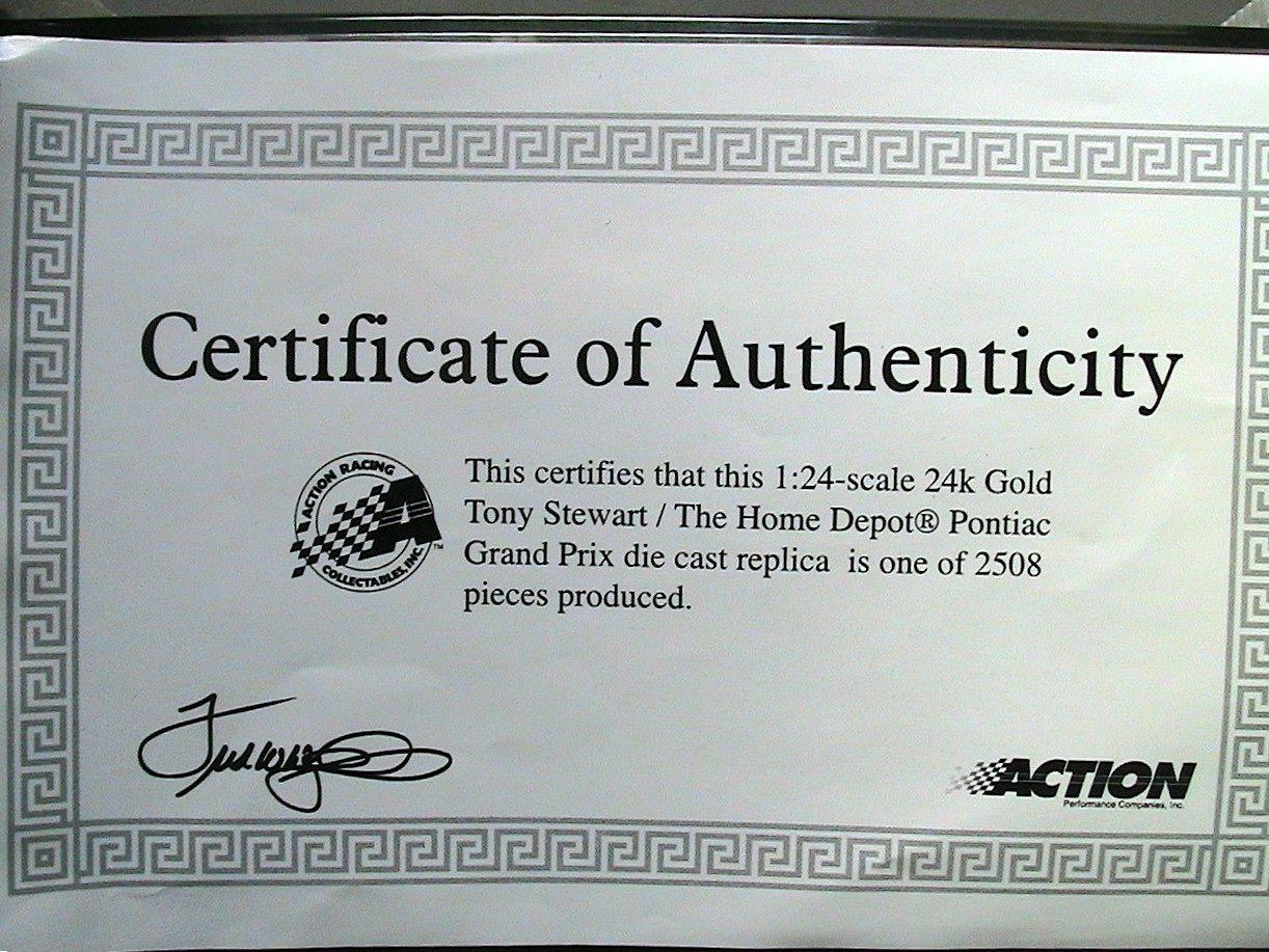 ACTION 1999 Tony Stewart 20 Home Depot Pontiac 24kt GOLD w/COA 1:24 1 of 2,508