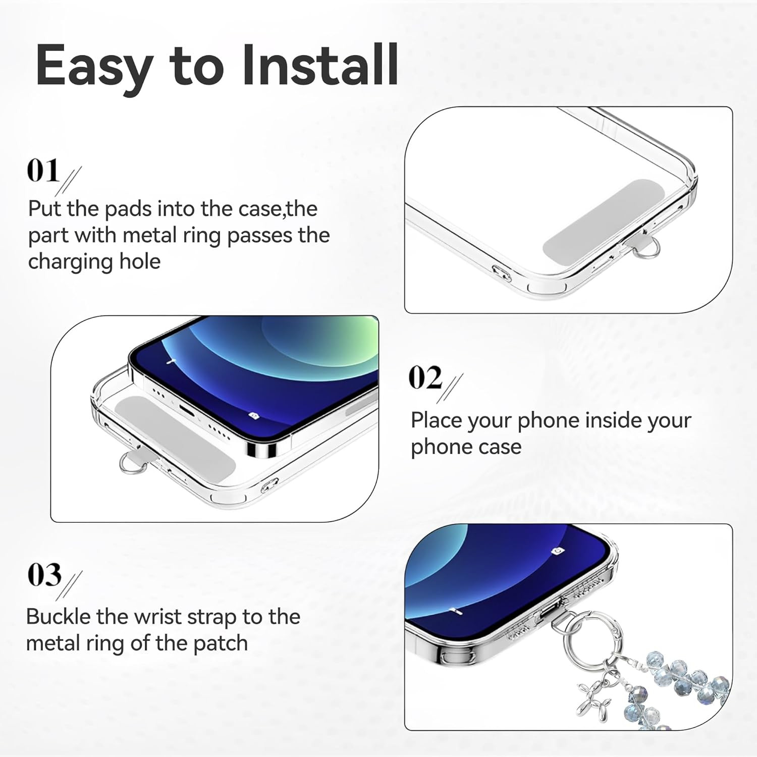 как выглядит Crystal Phone Wrist Strap Phone Charm Chain Keychain Beaded Cellphone Lanyard wi фото