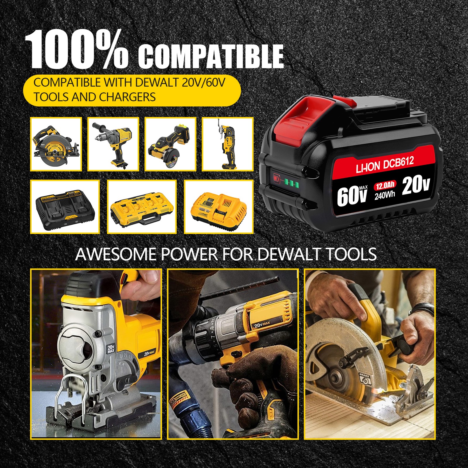 12Ah For DEWALT DCB609 DCB612 20V/60V MAX FLEXVOLT Lithium-Ion Battery /Charger
