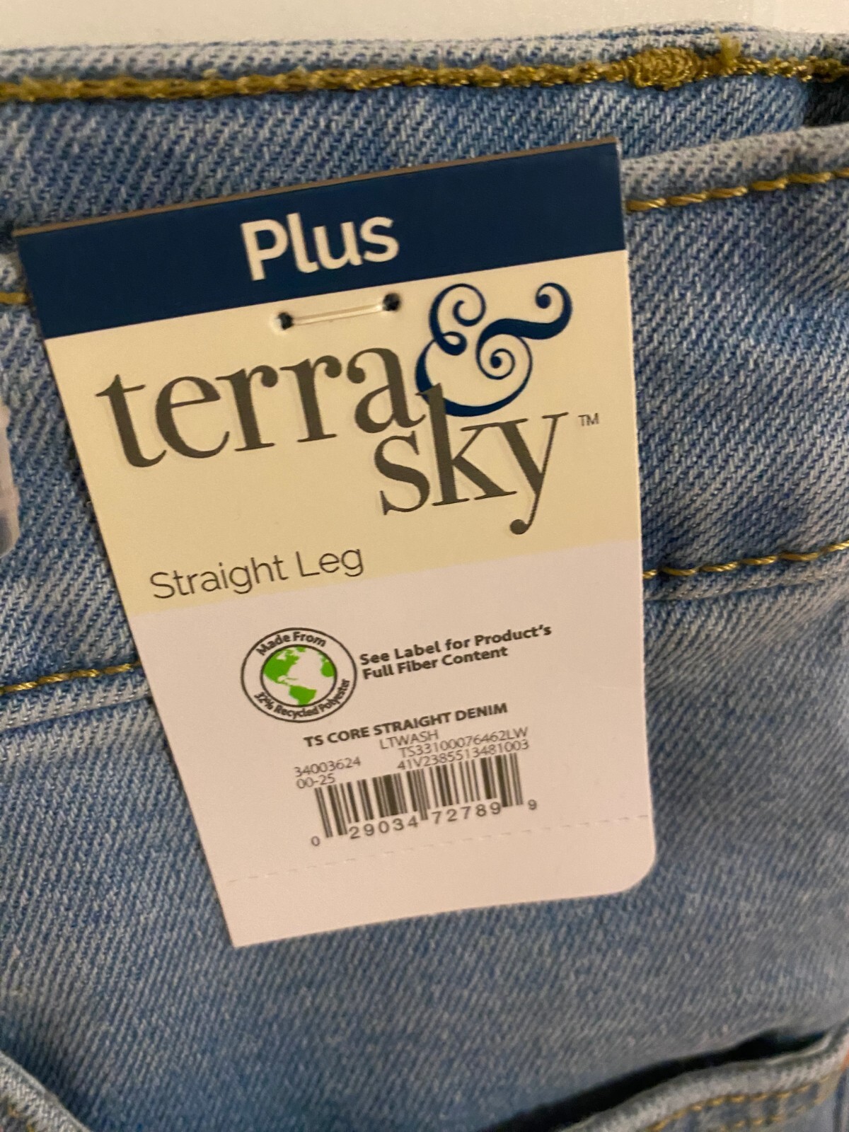 BRAND NEW WOMEN'S SIZE 18W TERRA SKY STRAIGHT LEG LIGHT WASH JEANS