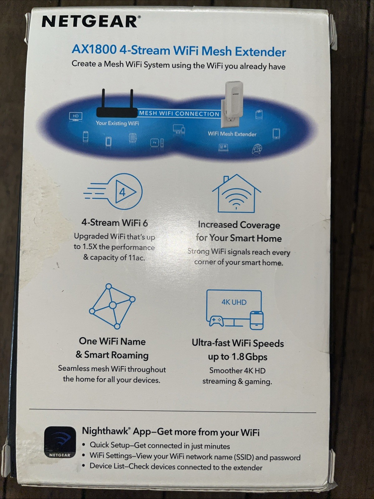 Netgear AX1800 Wi-Fi 6 Mesh Range Extender Wall-Plug 1.8Gbps EAX14-100NAS -LN