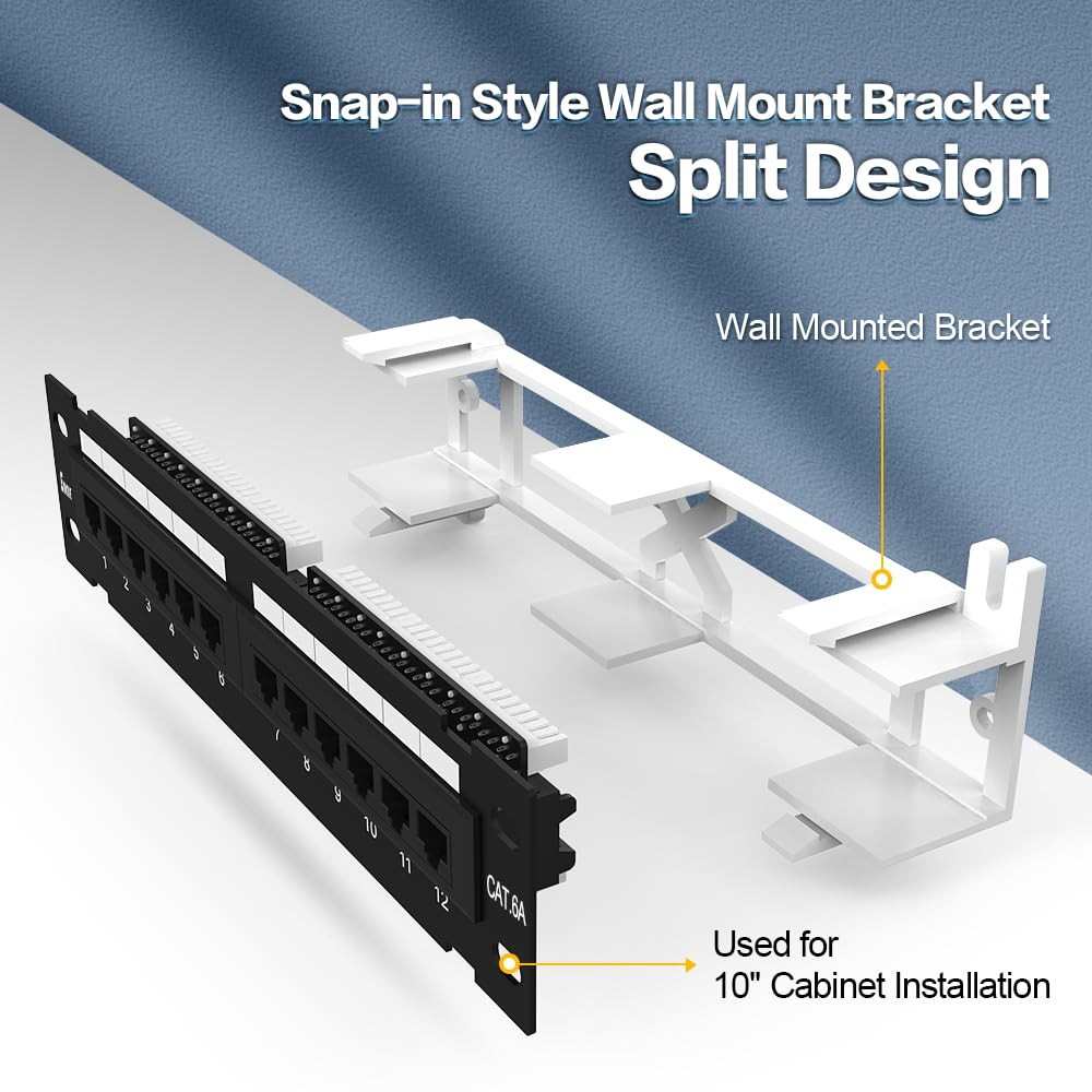 12 Port CAT6A Patch Panel, 10-Inch, Wall Mount, Rack Mount, Punch Down, UTP