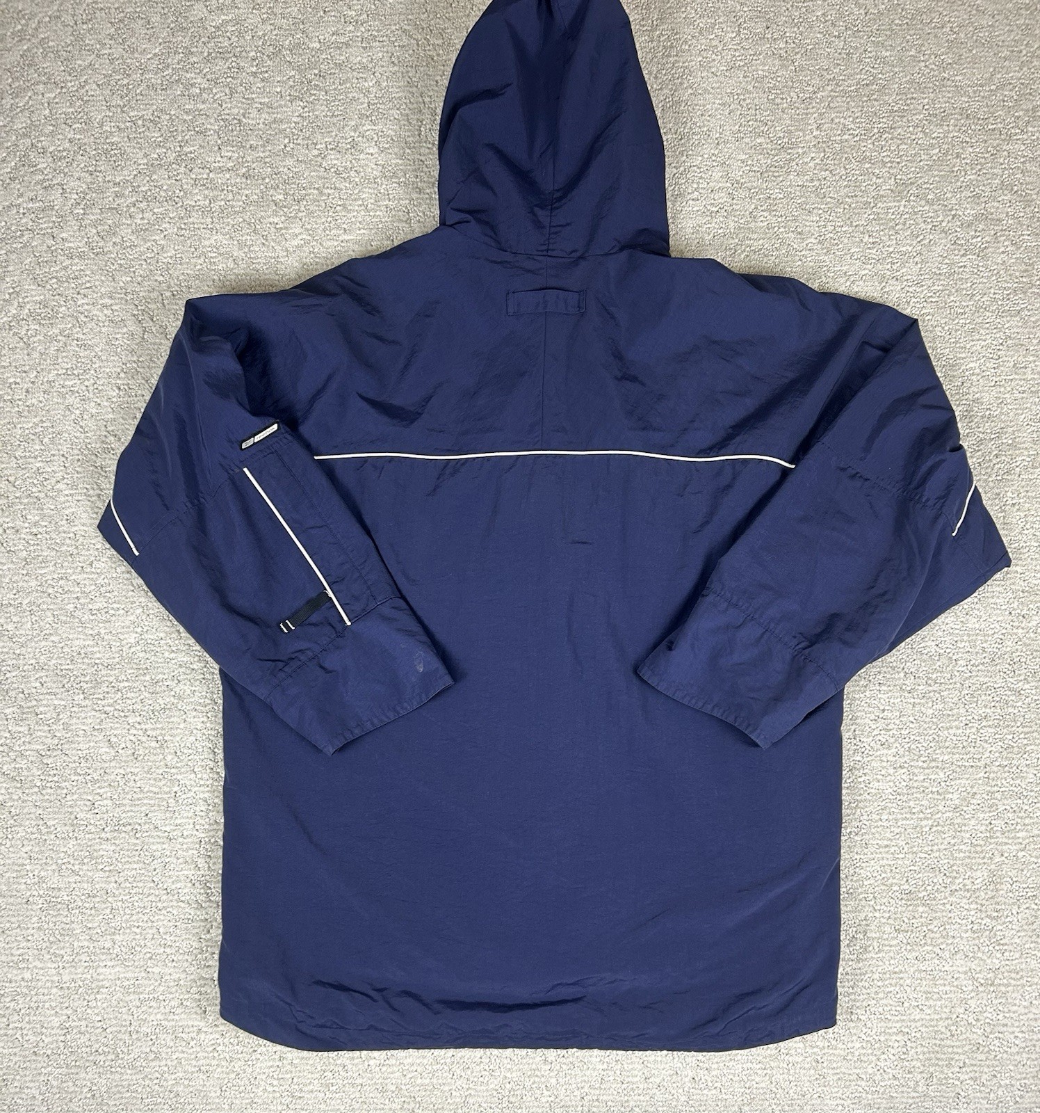 Vintage Reebok 90s Navy Hooded Windbreaker Jacket Fleece Lined Reflective Trim