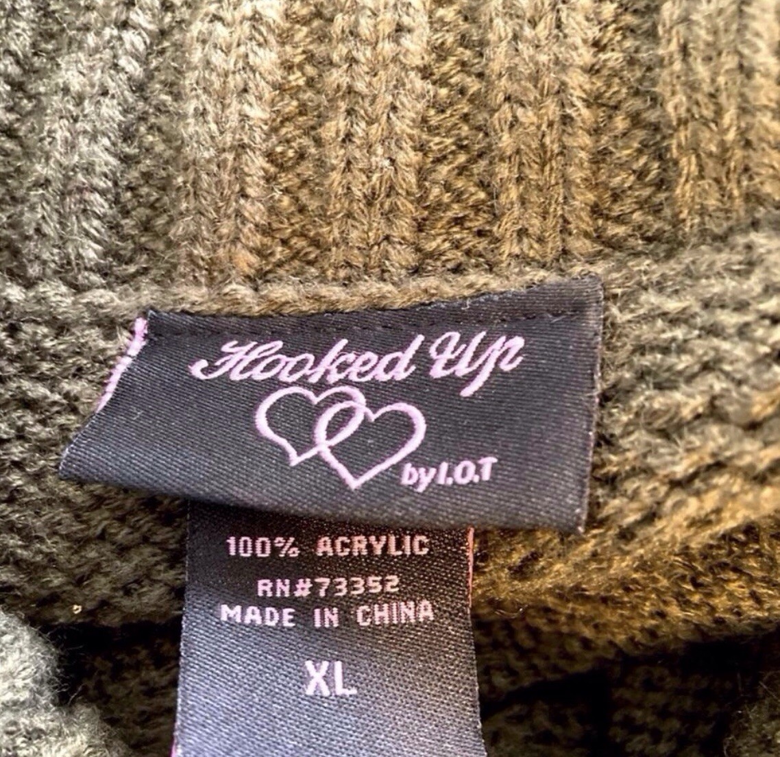 New Hooked Up by I.O.T Green black soft cable knit sweater