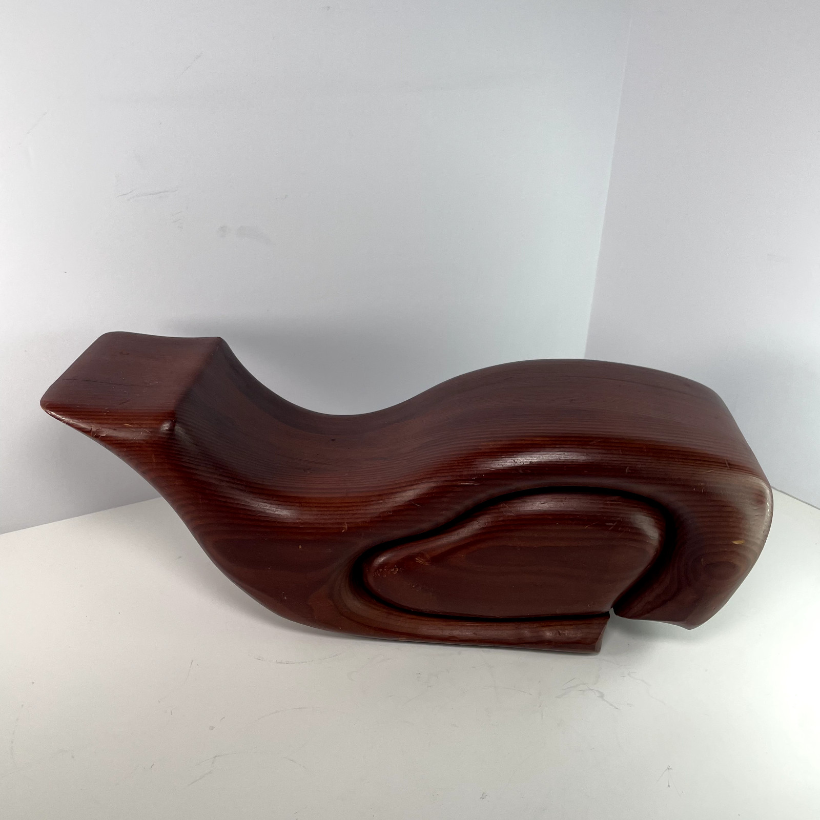 VTG MCM Redwood Carved Whale Puzzle Box Drink Coaster Trinket Box