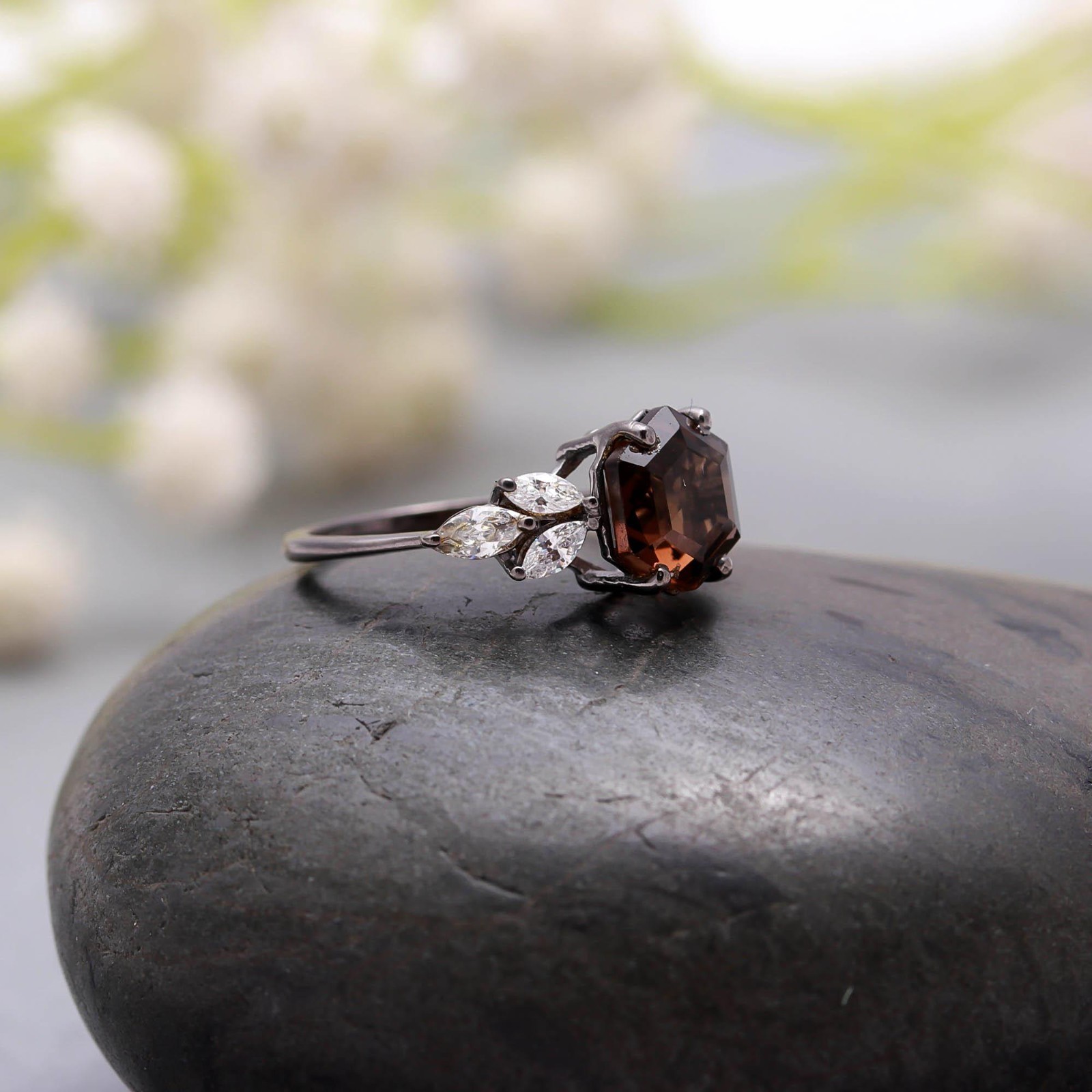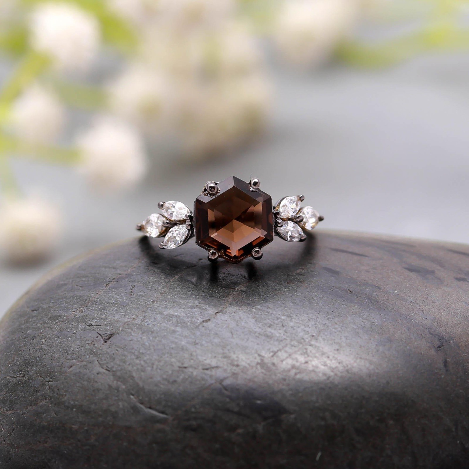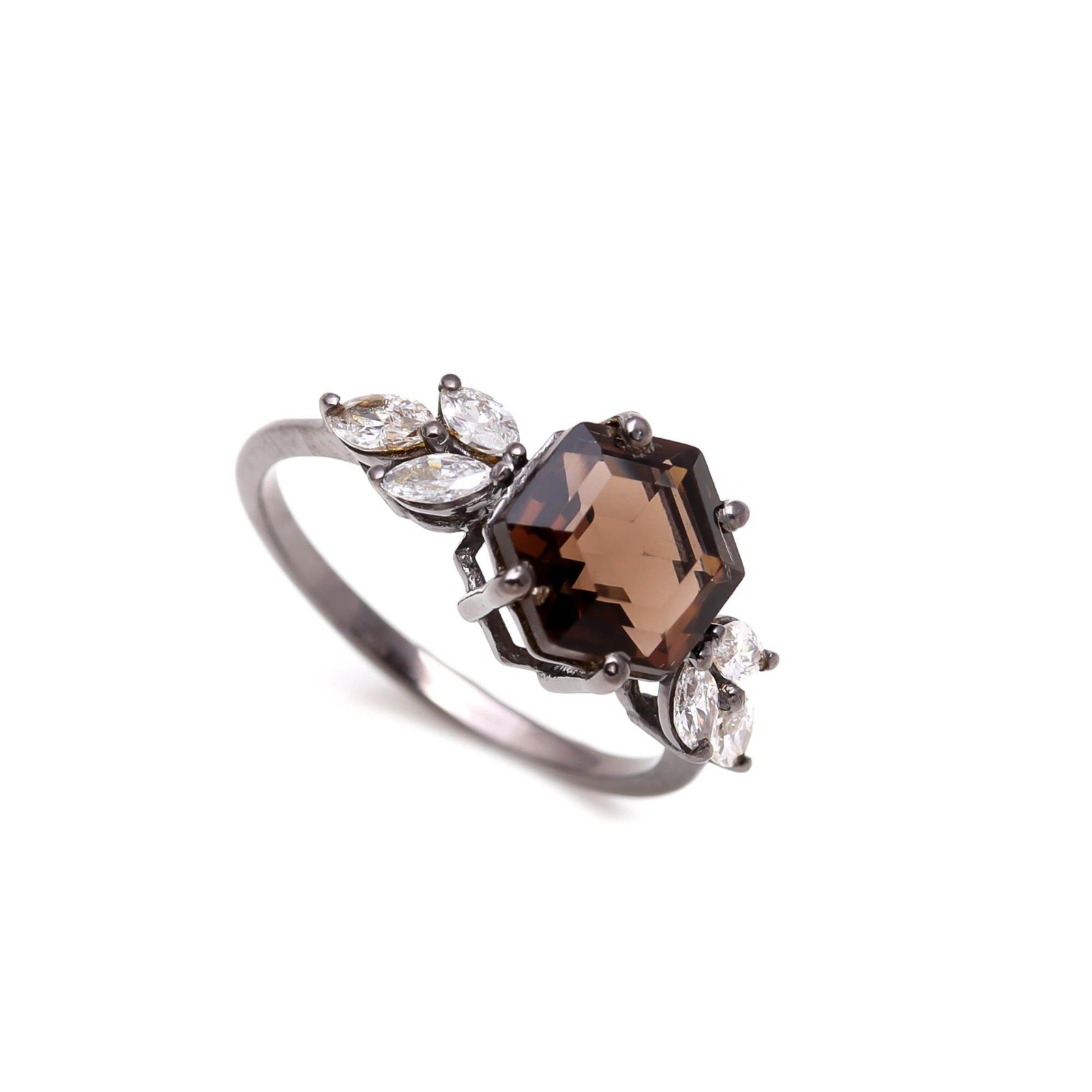 как выглядит Smoky Quartz Hexagon Ring Solid Silver Oxidized Dainty Jewelry For Birthday Gift фото