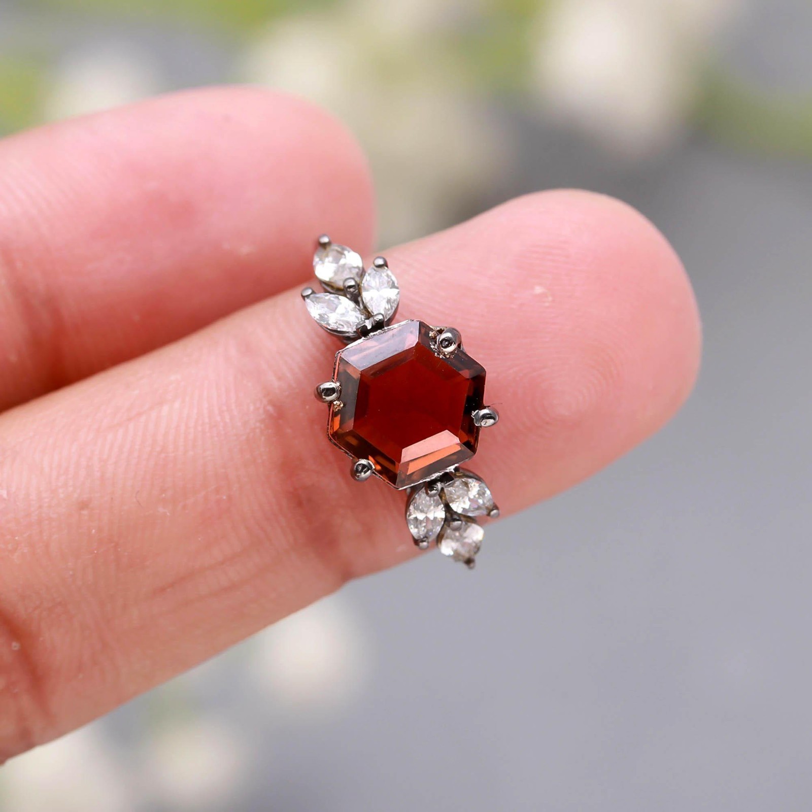 Smoky Quartz Hexagon Ring Solid Silver Oxidized Dainty Jewelry For Birthday Gift