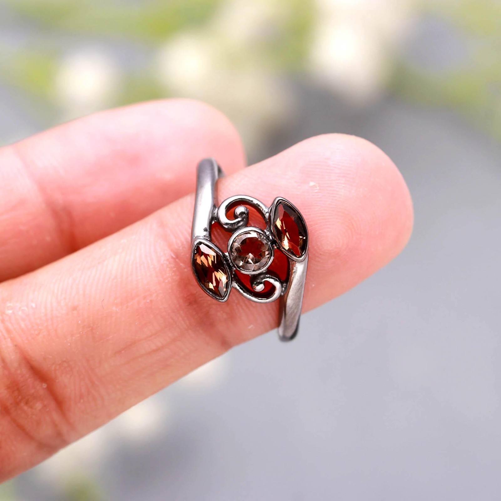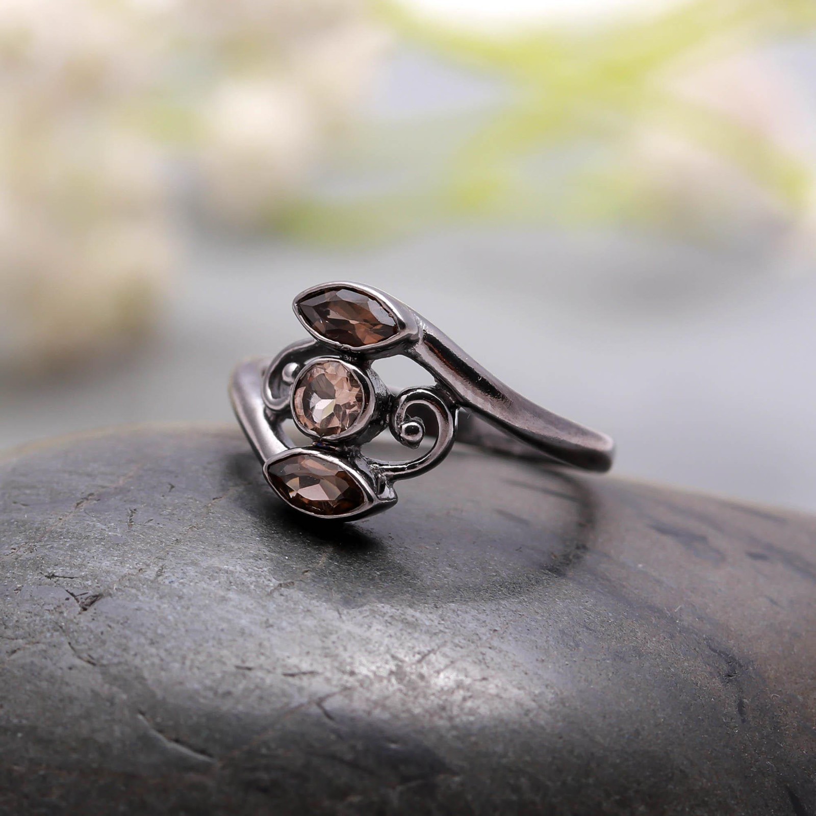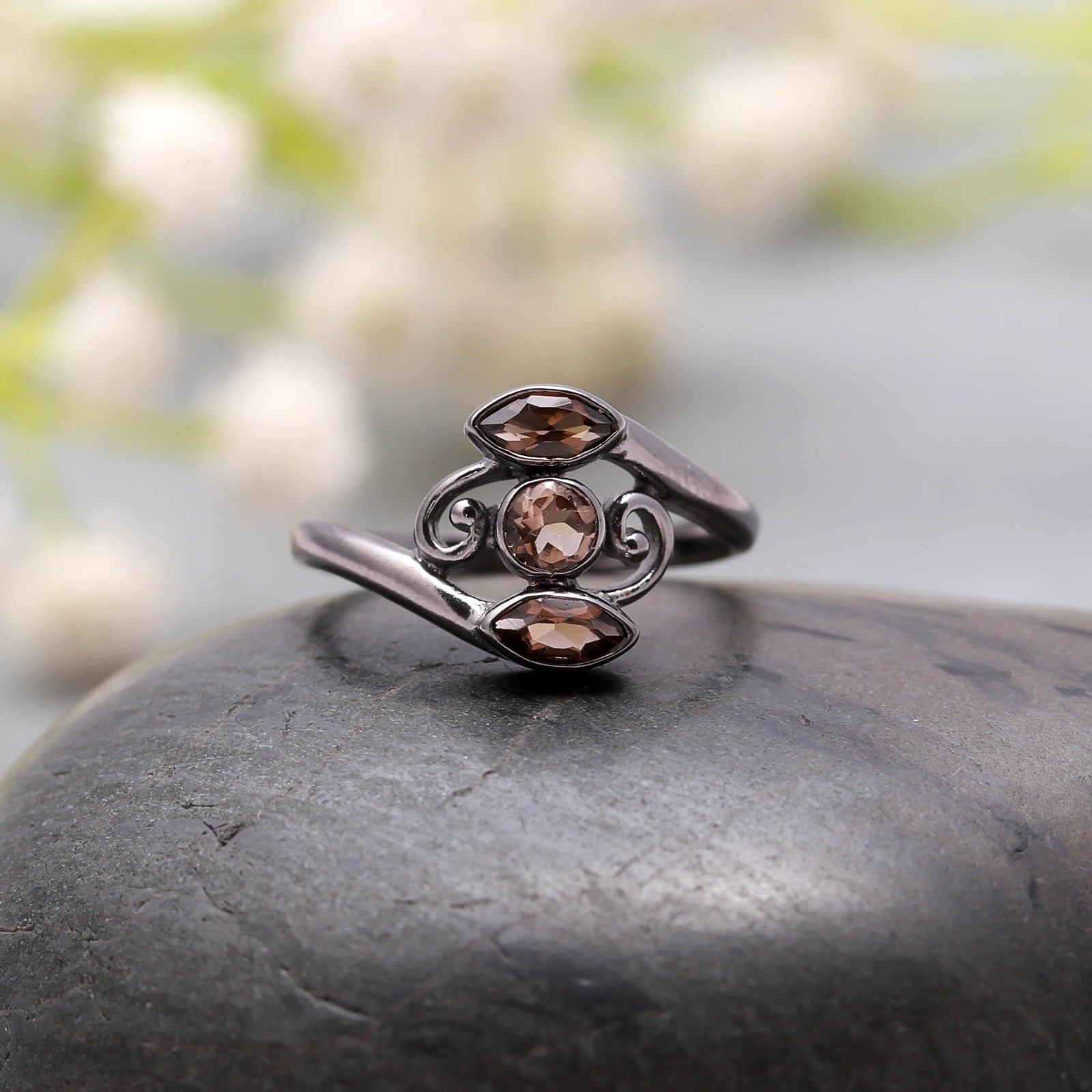 Smoky Quartz Marquise Ring 925 Sterling Silver Oxidized Dainty Jewelry For Her