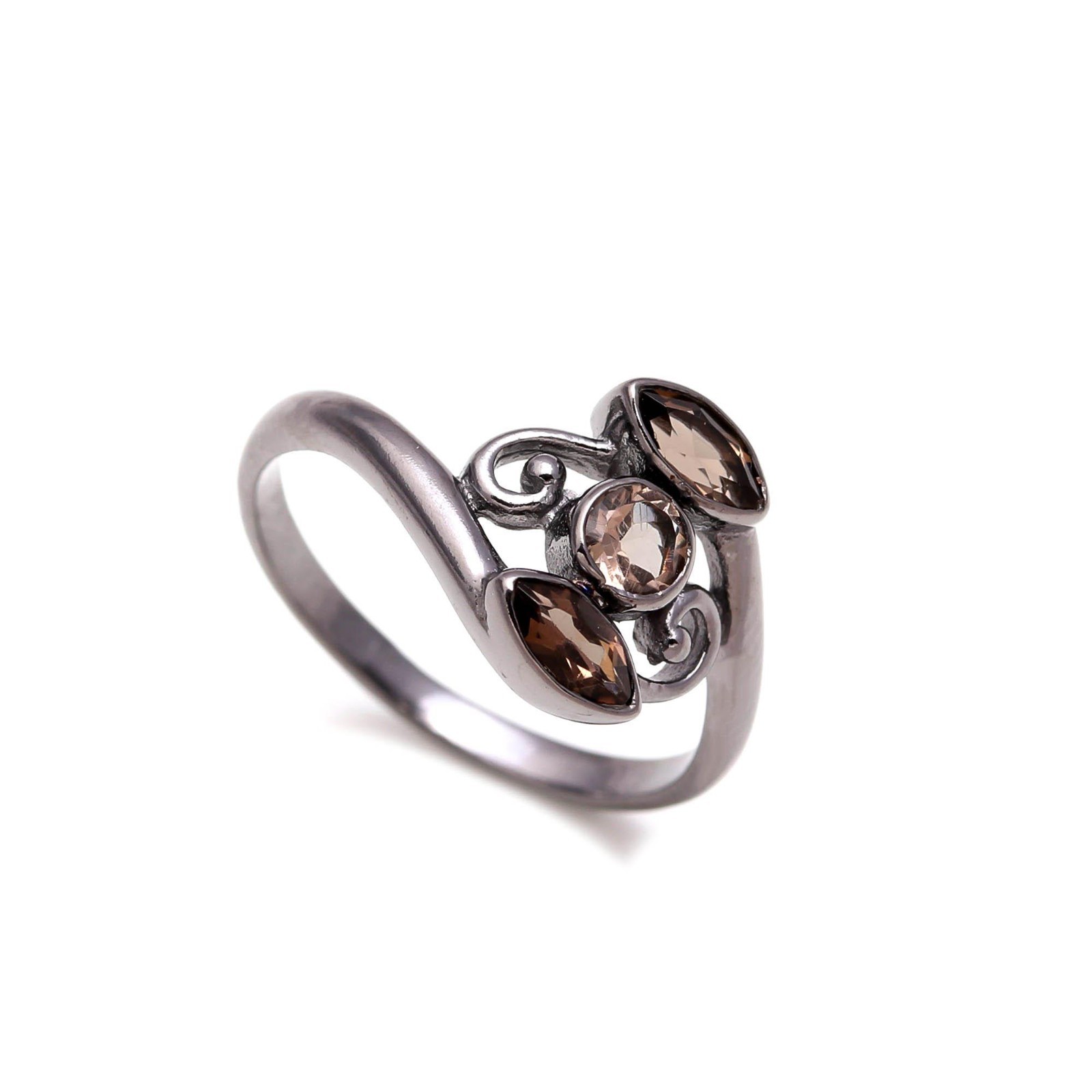 как выглядит Smoky Quartz Marquise Ring 925 Sterling Silver Oxidized Dainty Jewelry For Her фото
