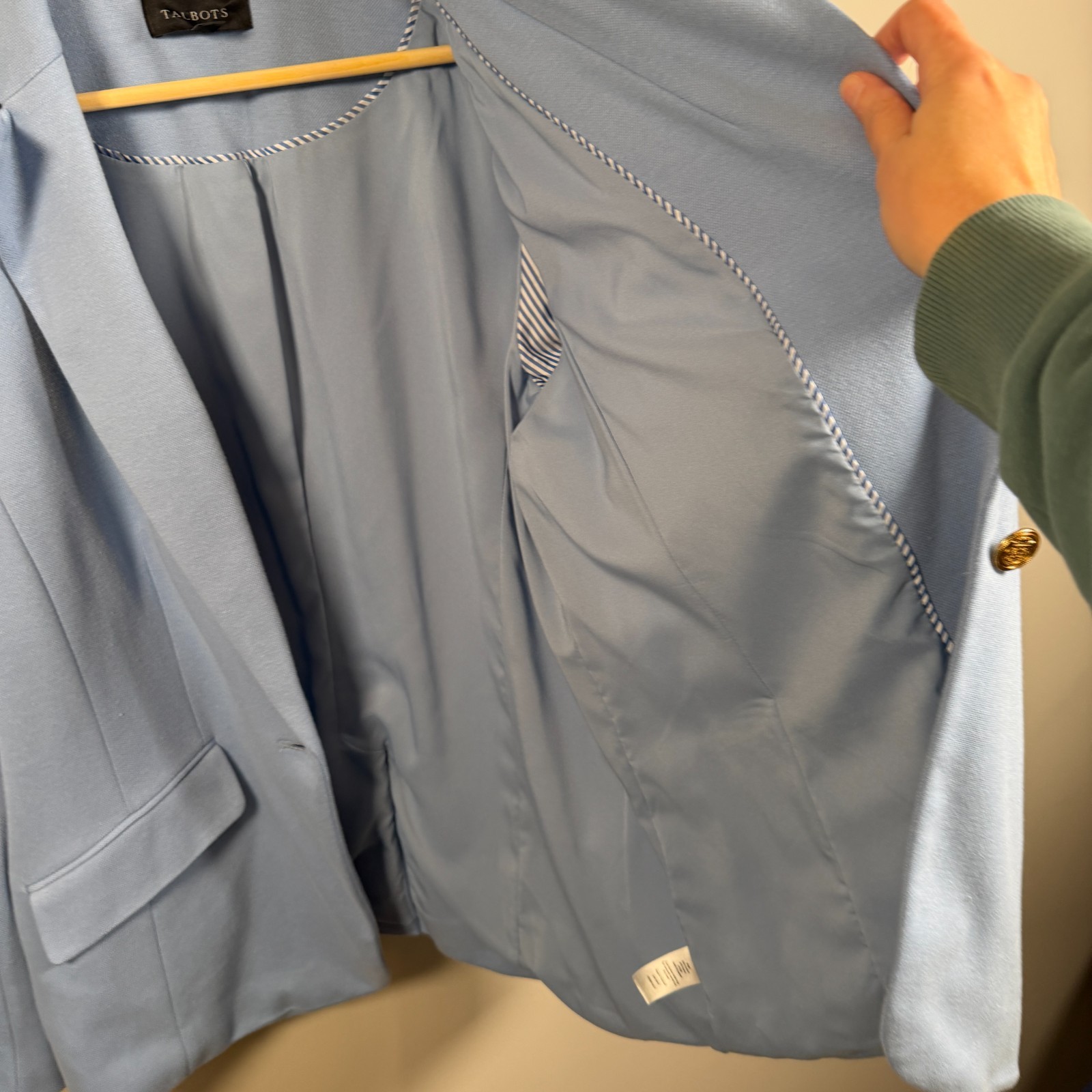 Talbots Blazer Jacket Size 16 Blue Gold Buttons Work Career Office Business