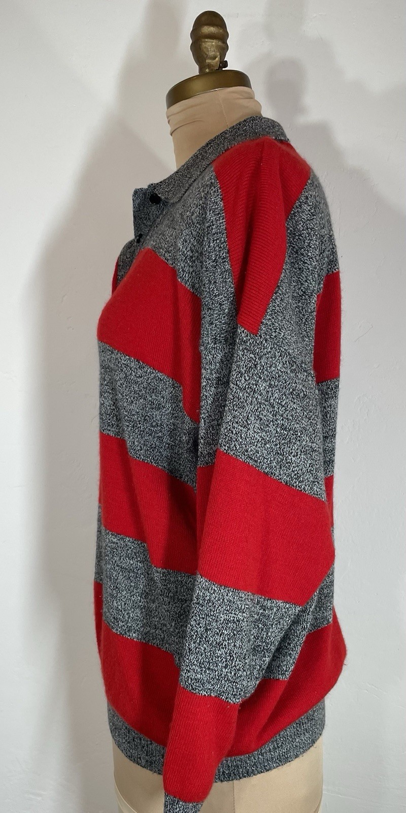 VTG Stripe Polo Oversized Sweater Women s SZ L 80s EBER Acrylic