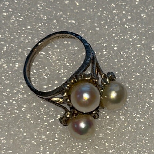 Vintage 925 Sterling Silver and Three Genuine Pearls Ring Size 5.5