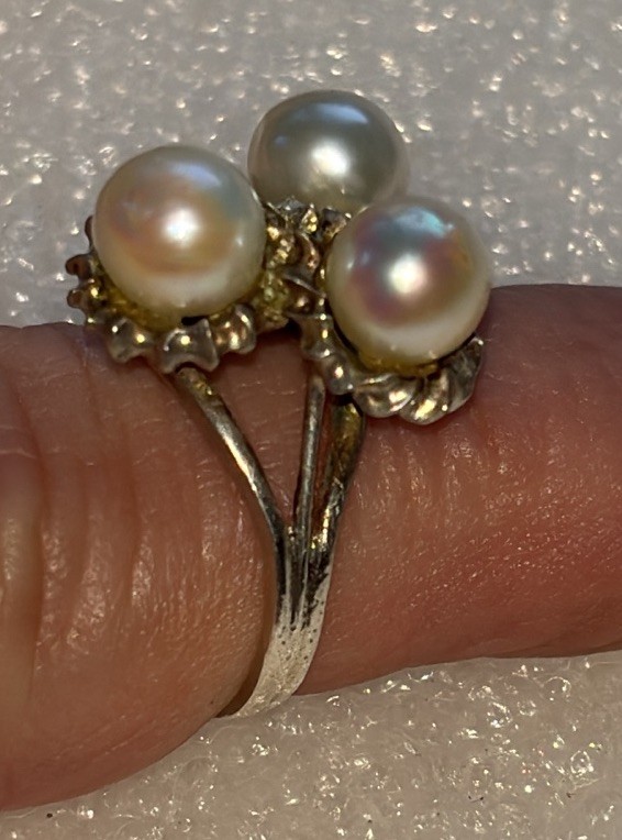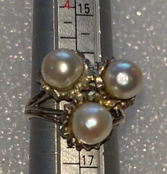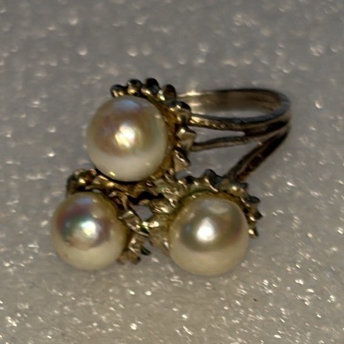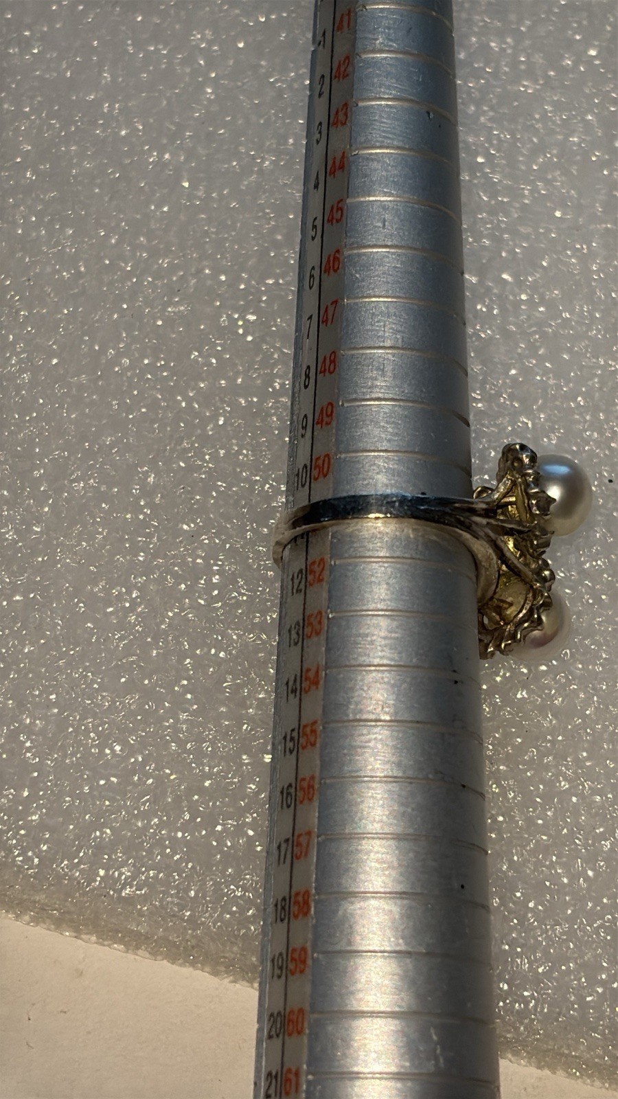 как выглядит Vintage 925 Sterling Silver and Three Genuine Pearls Ring Size 5.5 фото