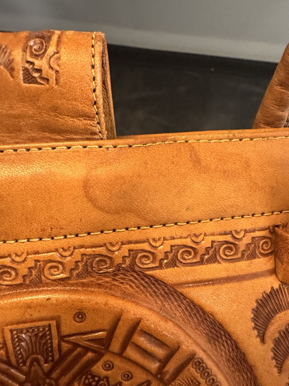 как выглядит Vintage Hand Tooled Mexican Leather Purse. Couple Dancing фото