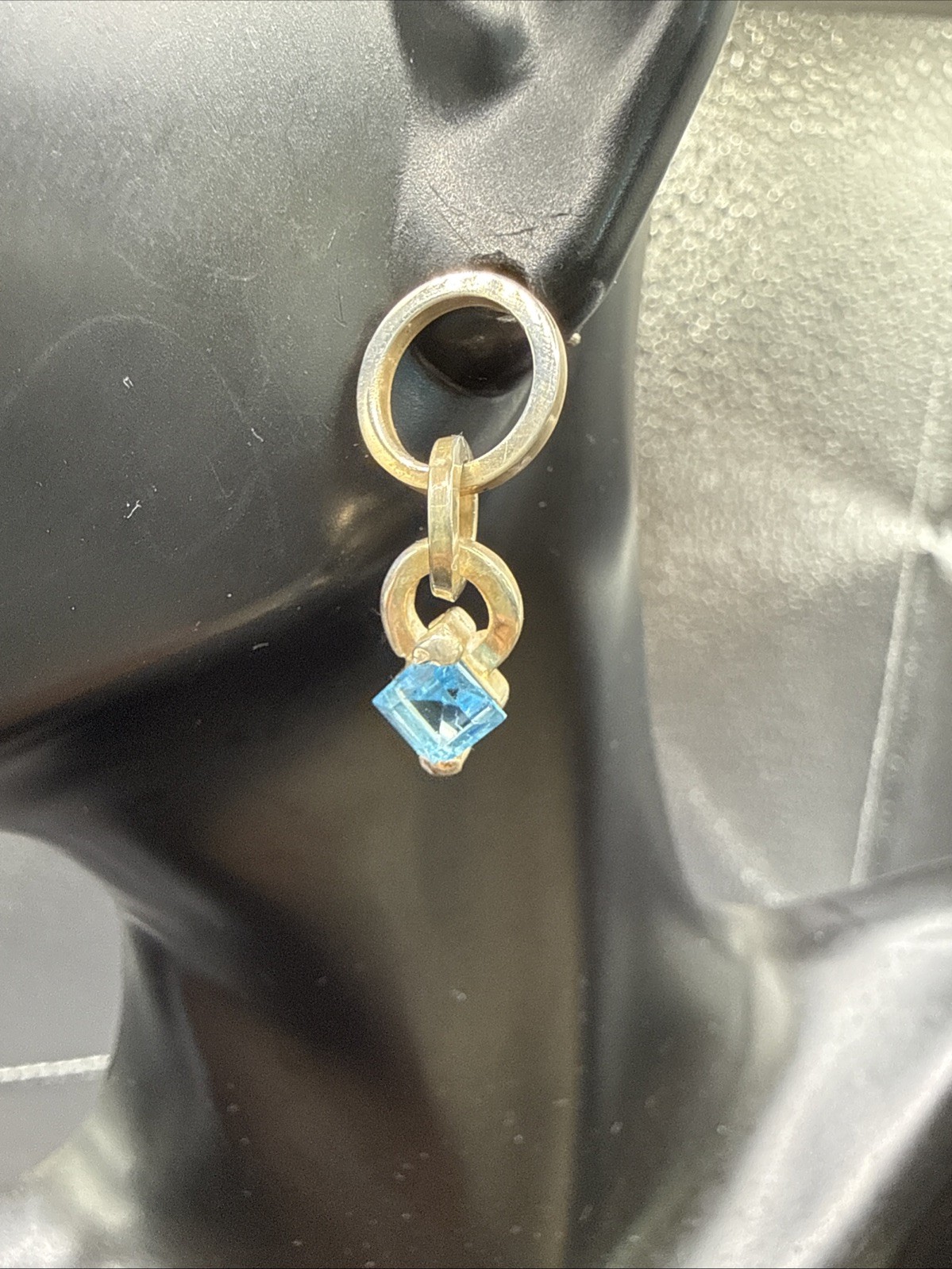 Stunning Sterling Silver Aqua Blue Sapphire Dangling Earrings 2129