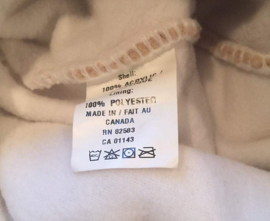 Canada Ivory/Natural Textured Outdoor Knit Beanie Hat W White Fleece Lining O/S