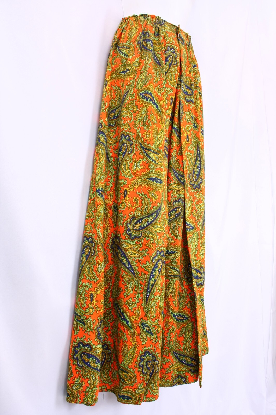 Vintage 1960s Paisley Double Wrap Wide Leg Palazzo Pants Psychedelic Mod Neon