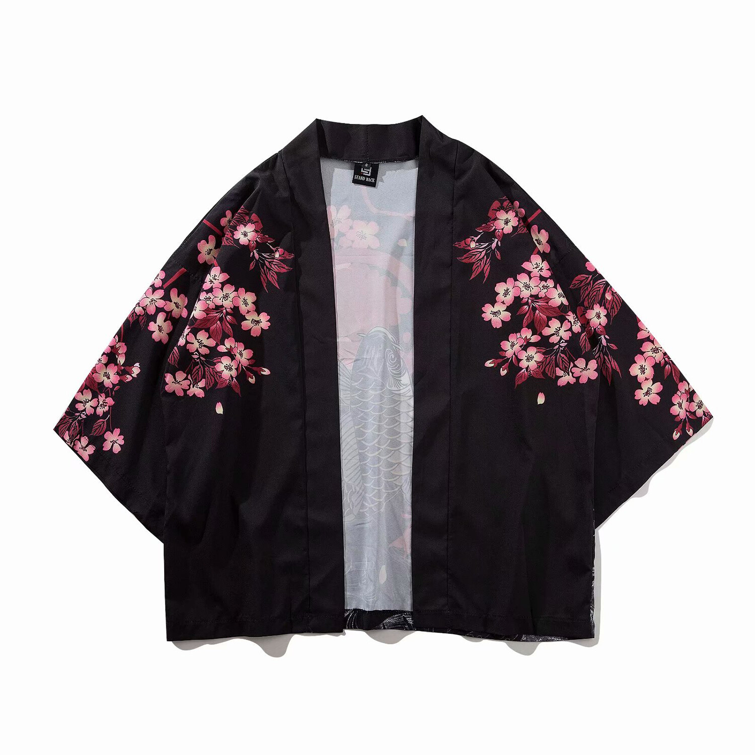 Niepce Men s Fish in The Pond Graphic Lightweight Harajuku Kimono Cardigan