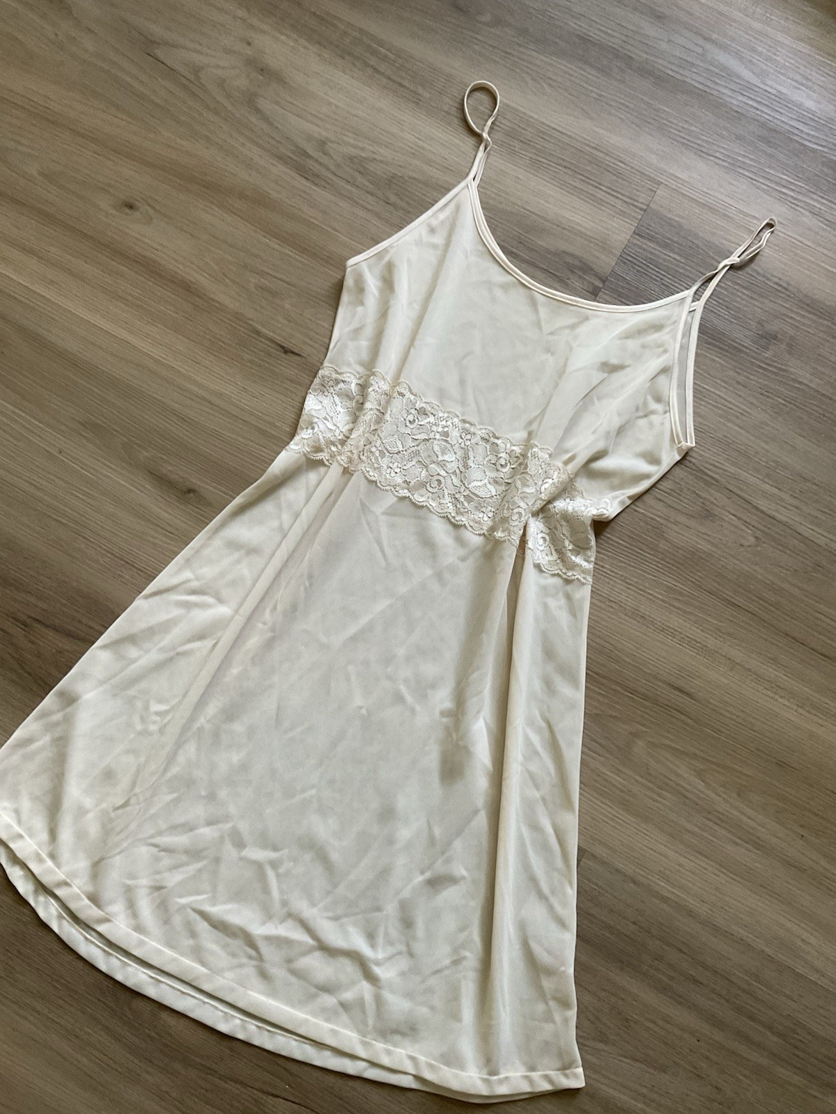 VTG 60s Lace Slip Dress Babydoll Ivory Silky Full Slip Lingerie Nightgown Small