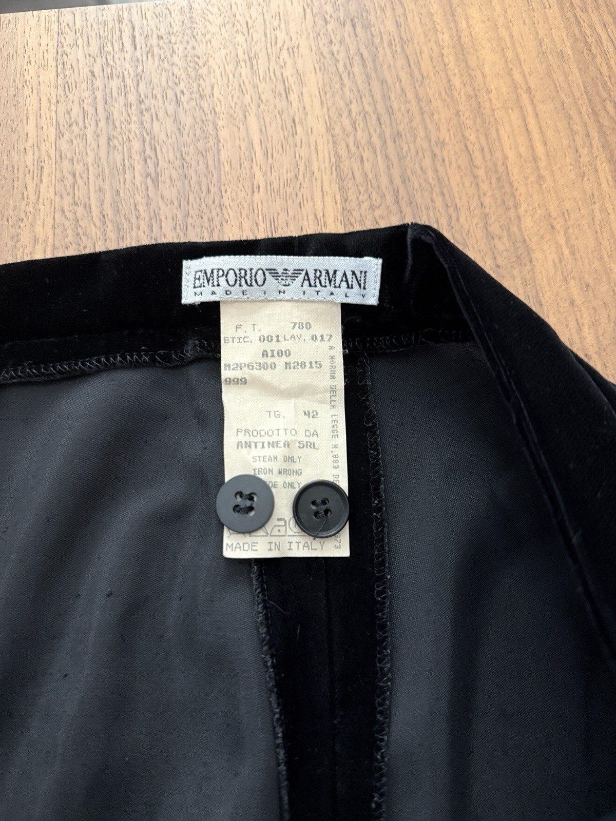 Vintage Emporio Armani Velour Velvet Black Wide Leg Pants Size 42