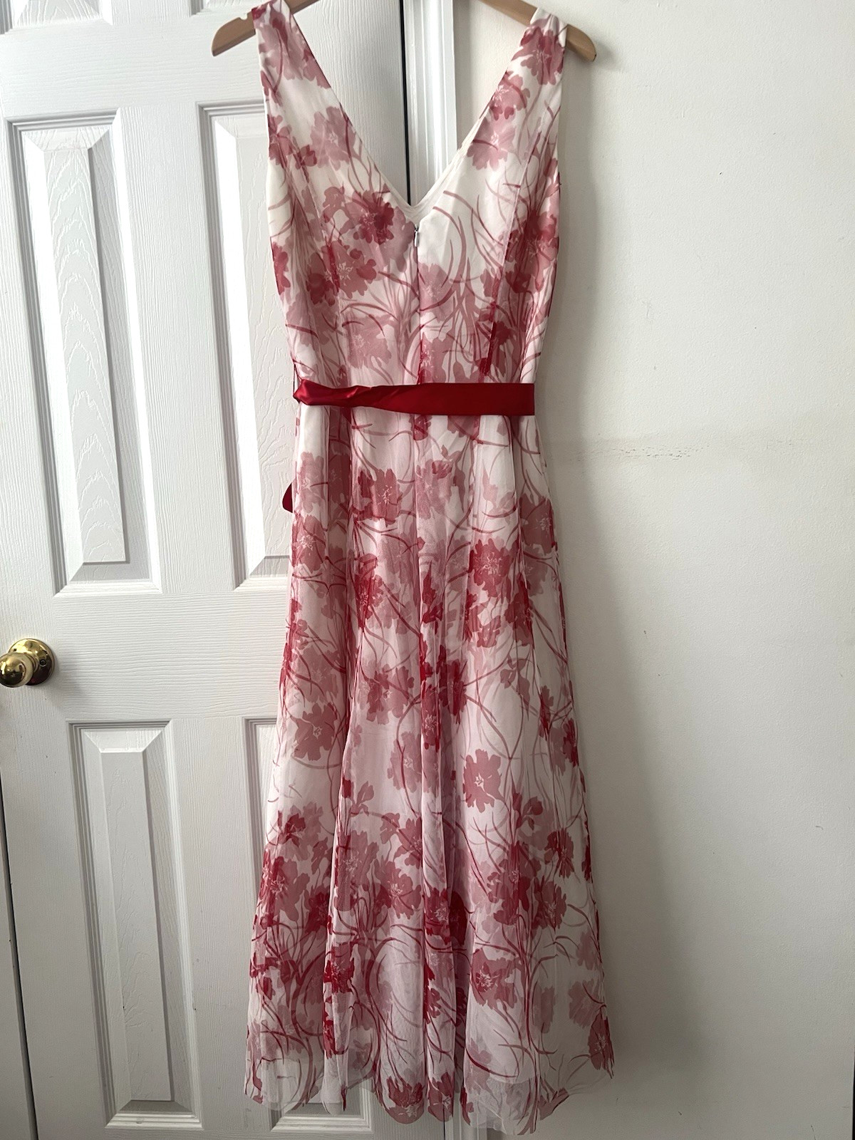 как выглядит Papell Boutique Evening Gown Size 10 Red/White Floral Print Lace Mesh - Lined фото