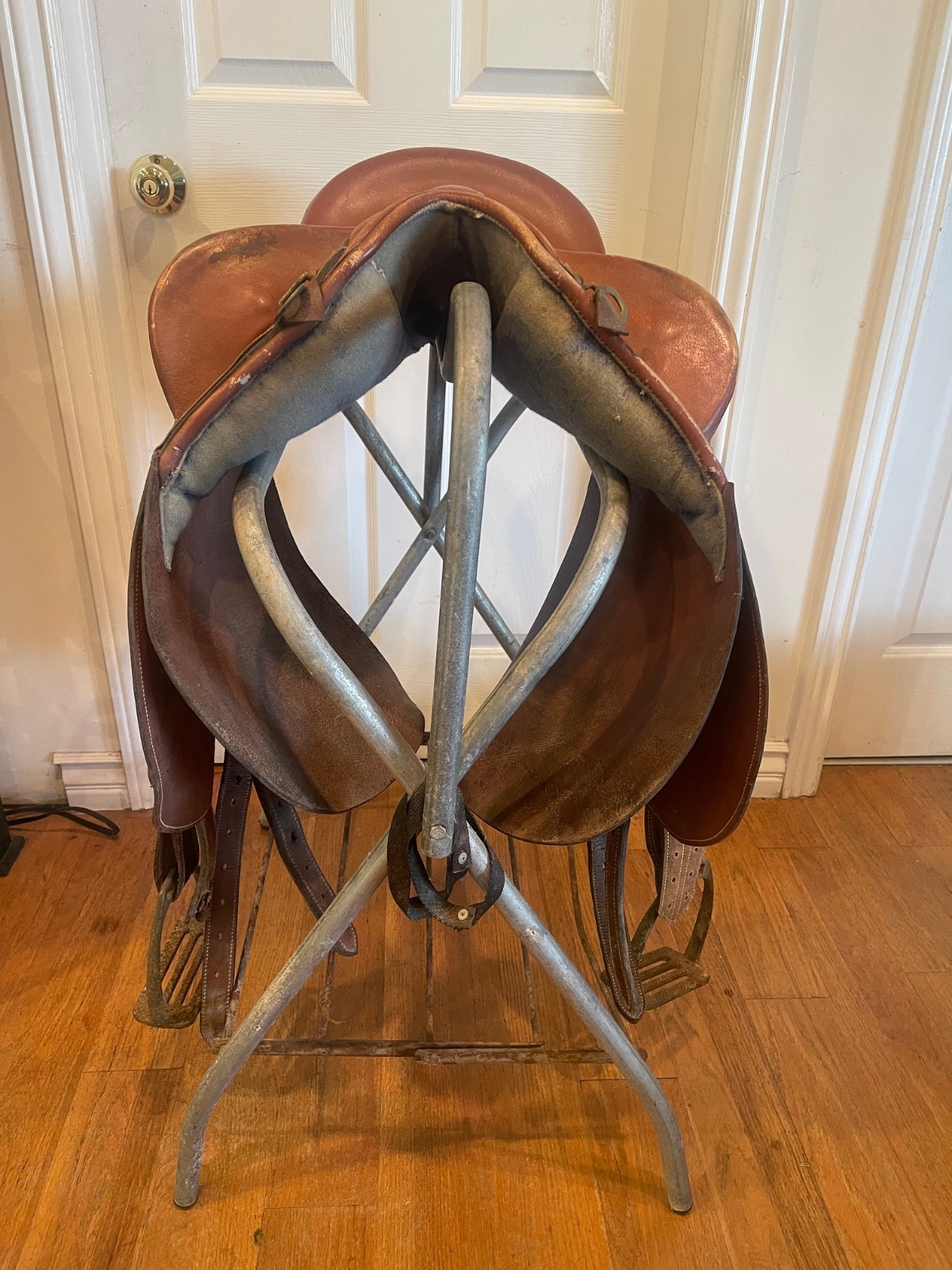 как выглядит 16" hornless Australian saddle w/Western matching leather cinch фото